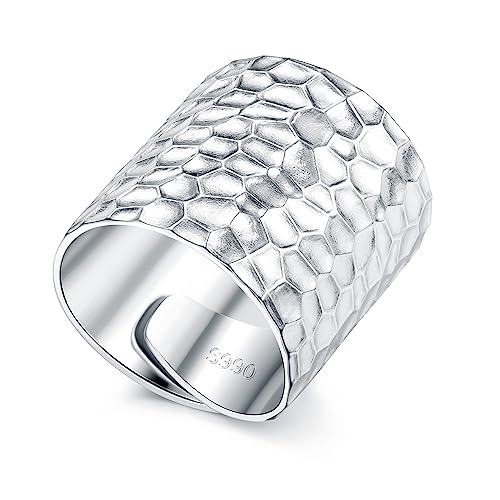KRFY 990 Sterling Silver Rings for Women Men Adjustable Wide Hammered Thumb Ring High Polished Handmade Dome Band Rings Womens Mens Silver Jewellery Gifts