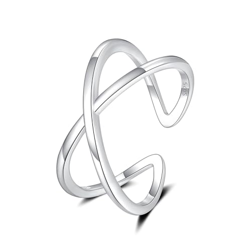 Loutade Adjustable Silver Rings for Women, 925 Stering Silver Simple Open Rings, Silver Adjustable Ringe in X-Form, Minimalist Open Finger Rings Band Pinky Promise Thumb Rings with Gift Box