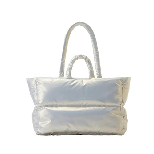 ZYAGH Silver Winter Padded Large Tote Bag Designer Puffer Women Shoulder Bags Nylon Waterproof Lady Handbags(Silver)
