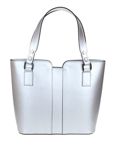 ER Direct Ladies Handbags Soft Italian Real Leather Medium Shopper Tote Bags Women Girls College Shoulder Handbags for Women (Silver)