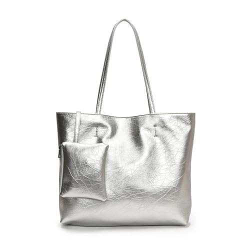 LUYSGBXR Women's Leather Crossbody Bag High-capacity Leather Tote Bags For Women Female Shoulder Bag Soft Handbags And Purses(Silver)