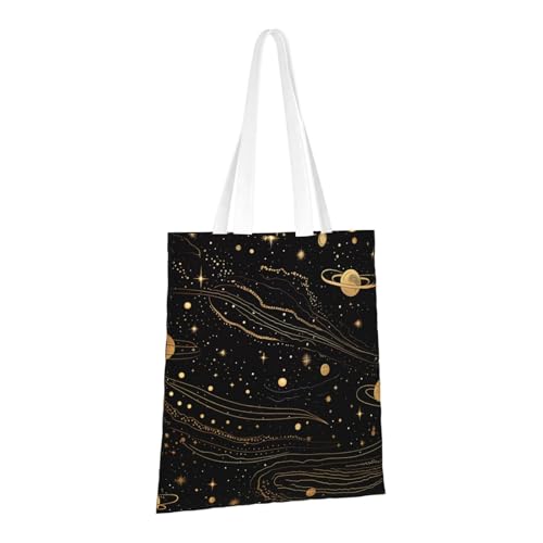 FZQVSLCM Canvas Tote Bag for Women Handbags Gold and silver space themed Reusable Grocery Bags Shoulder Bags Funny Gift Bag
