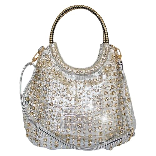 DSFDFDG Bag For Party Women Elegant And Versatile Rhinestone Purse Luxury Designer Handbags Tote Bag For Evening Prom Wedding Party(Silver)