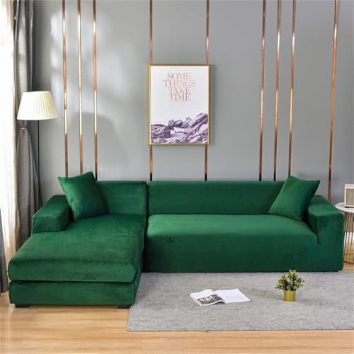 Odot Sofa Cover,Stretch Silver Fox Velvet Sofa Cover 1 2 3 4 Seater,Breathable Soft Sofa Slipcovers,for Corner Sofa Cover L Shape,Couch Cover Non Slip Furniture Protector Cover (Green,2 Seater)
