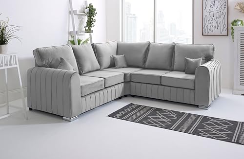 Furnishings For Less UK New Silver Crushed Velvet Corner Sofa 3 4 Seater | Crystal Range Left Hand Facing (Silver, Left Hand Facing)