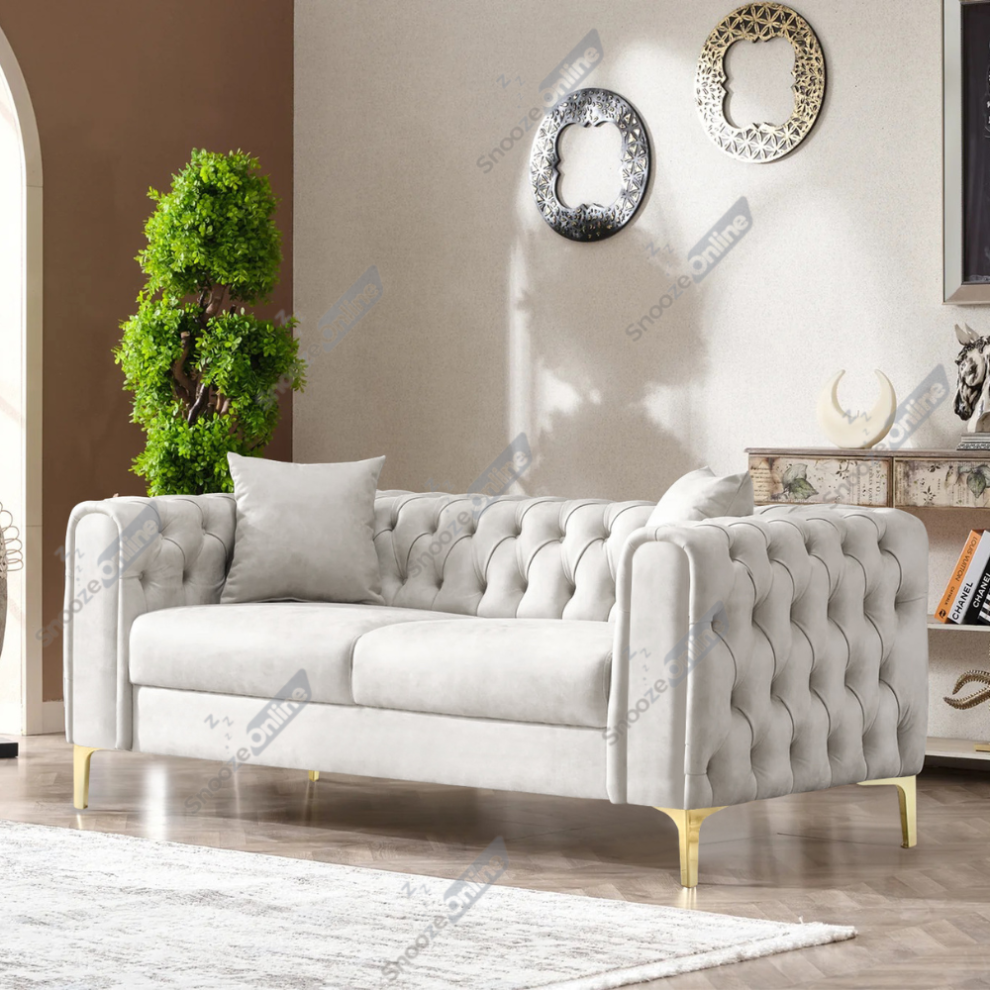 (Silver Velvet, 2 Seater Sofa) SNOOZE Online Velvet Sloane 3 and 2 Seater Sofa Sets, Corner Sofas For Living Room, Upholstered Plush Fabric 3 Seater V