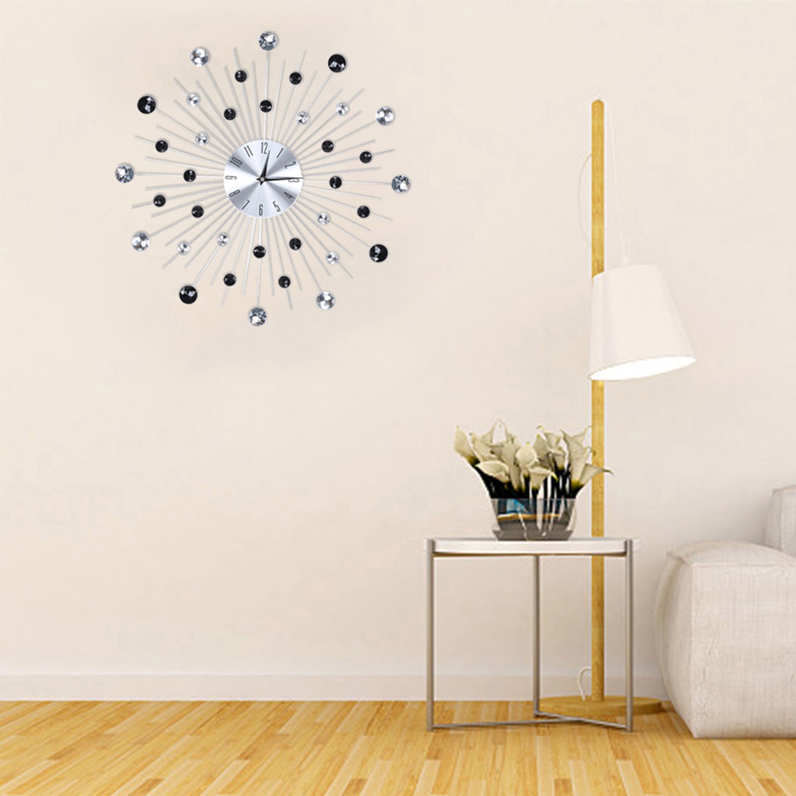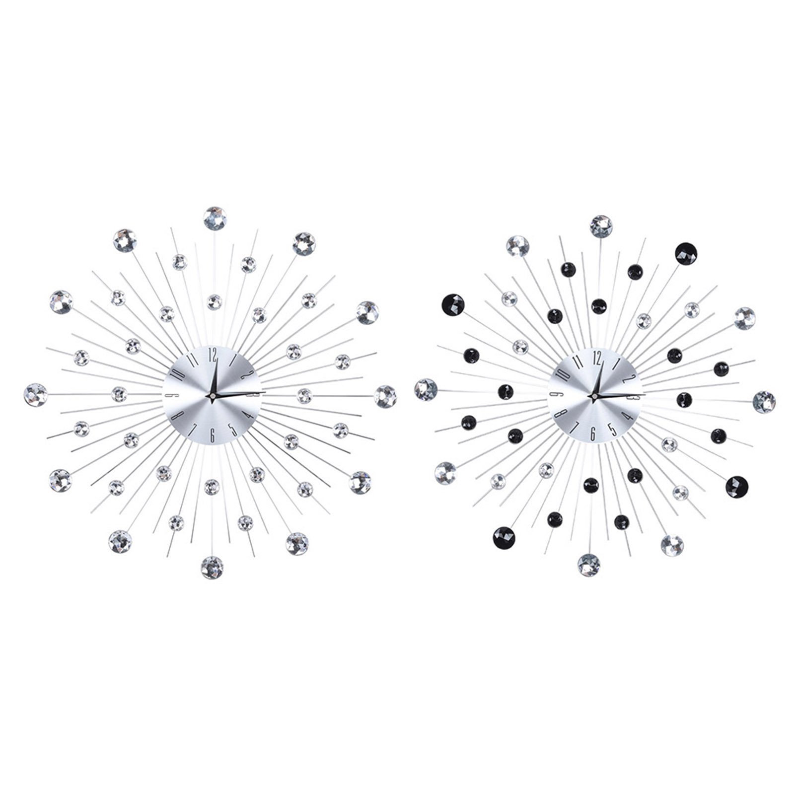 Silver+Black Rhinestone Sparkling Bling Metallic Silver Wall Clock For Living