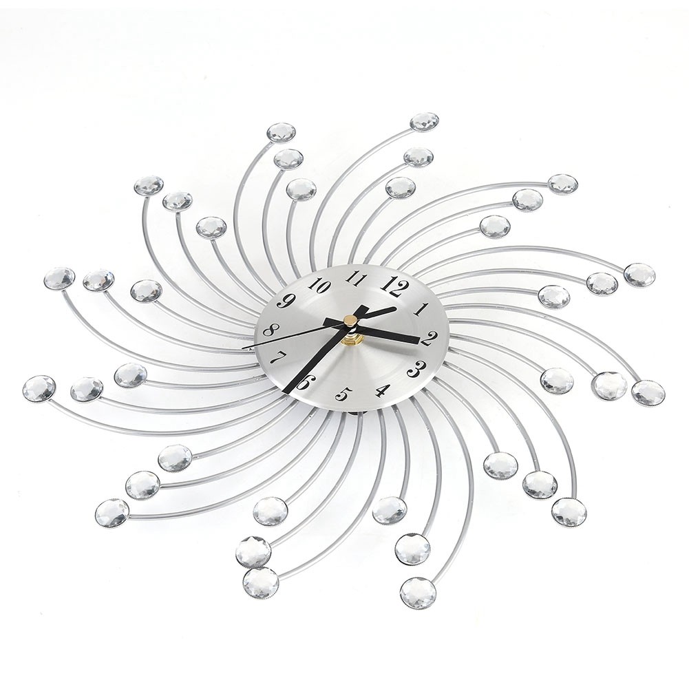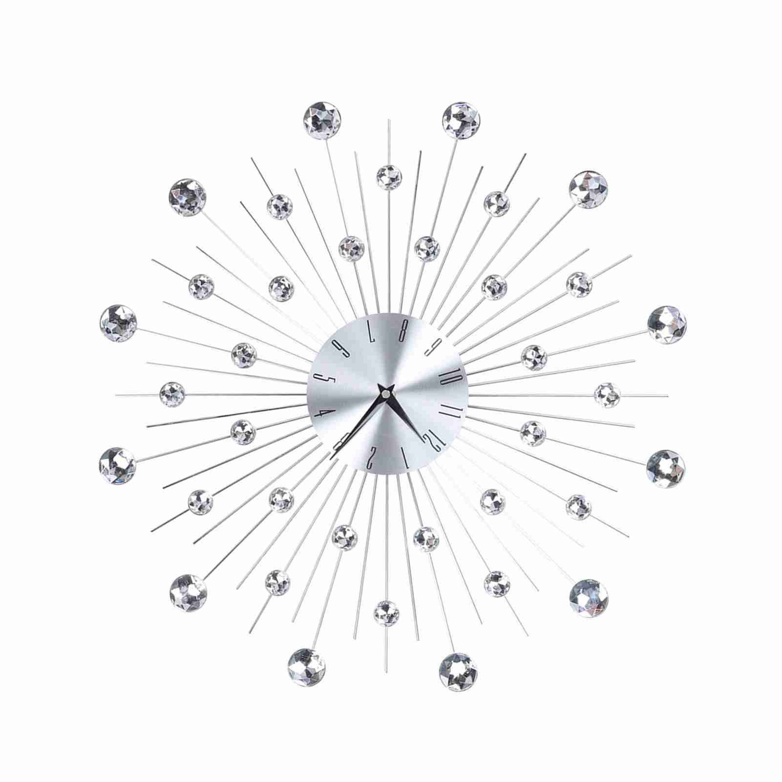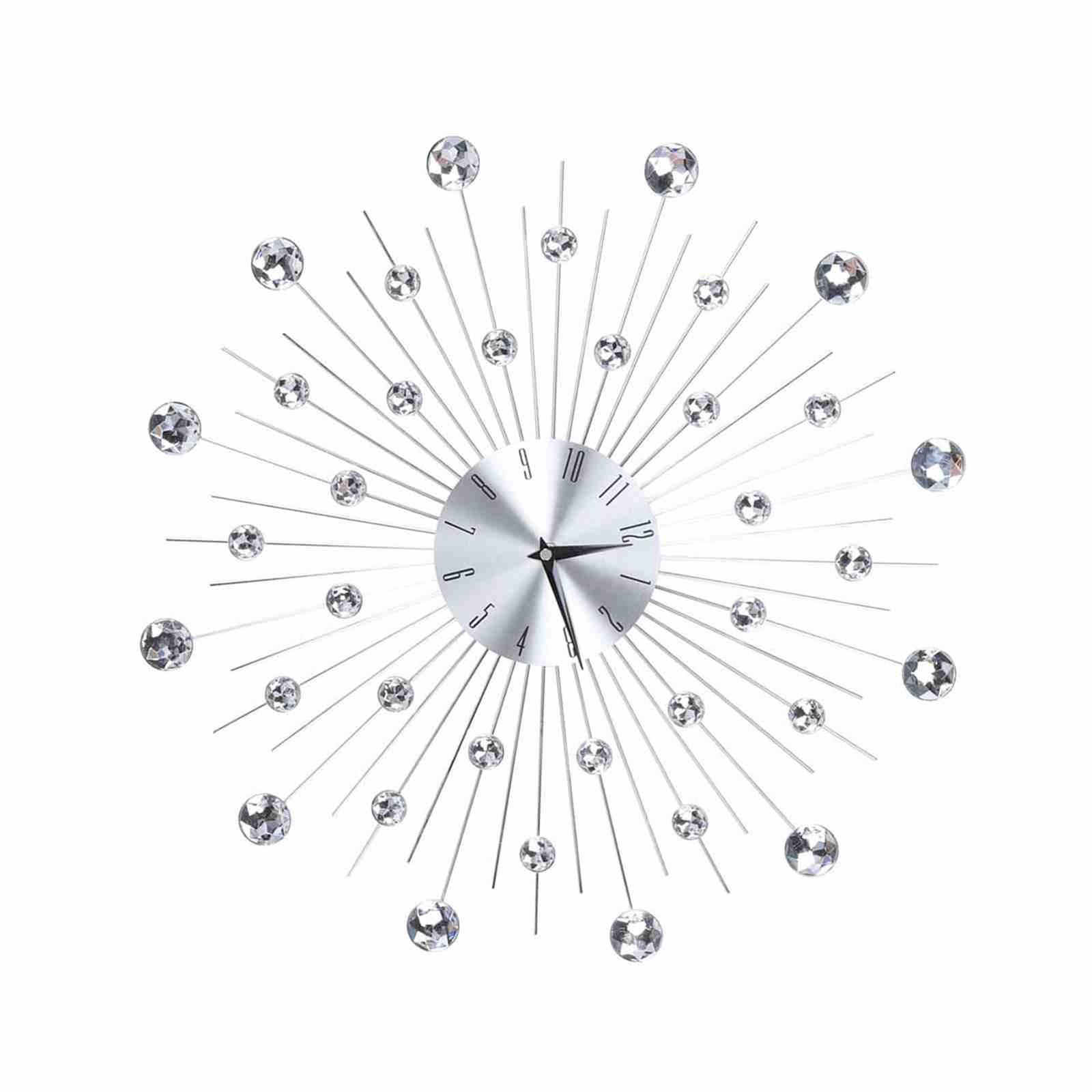 Silver Rhinestone Sparkling Bling Metallic Silver Wall Clock For Living Roo HEN