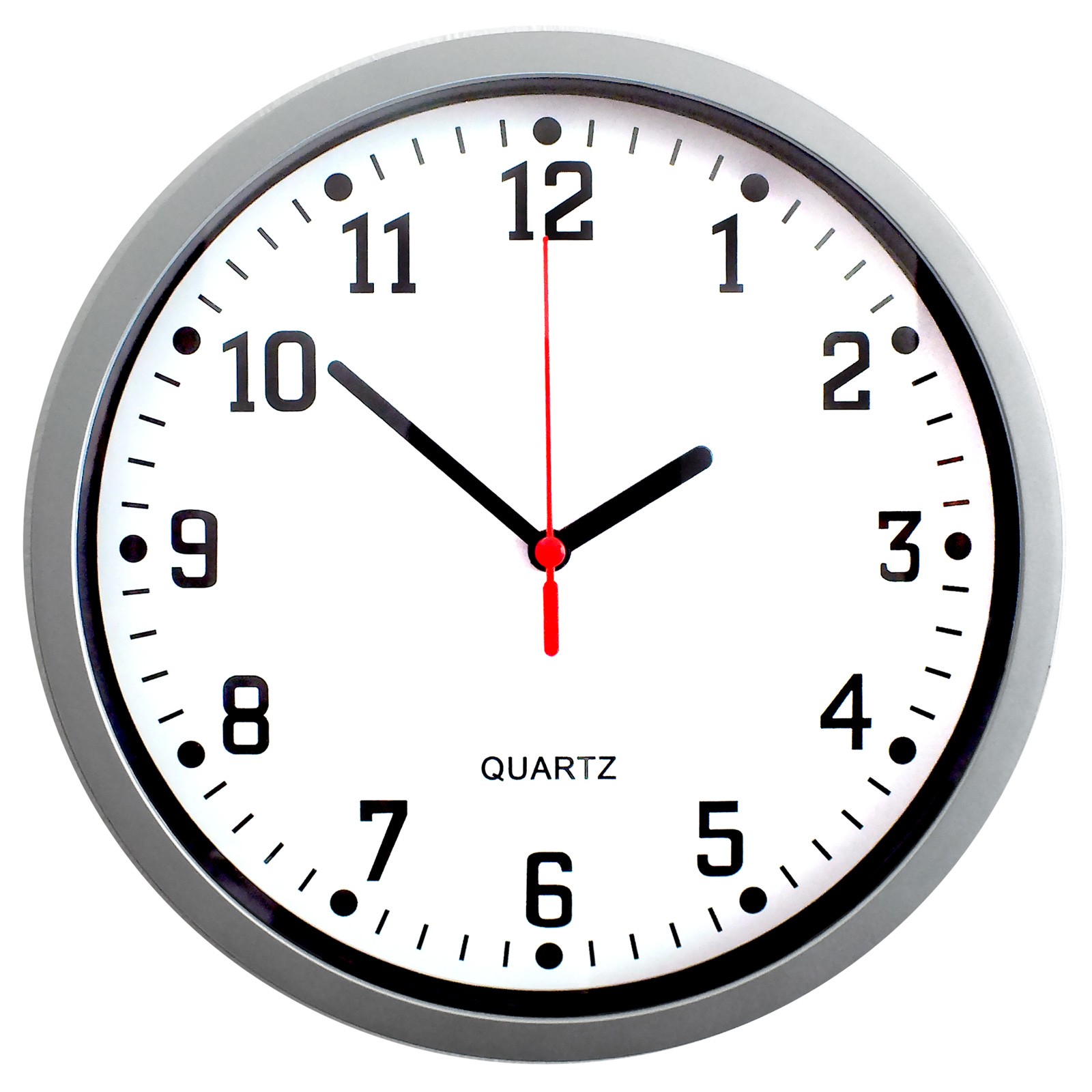 Silver Wall Clock 9" Round Quartz Bold Numerals Home Kitchen Bedroom Living Room