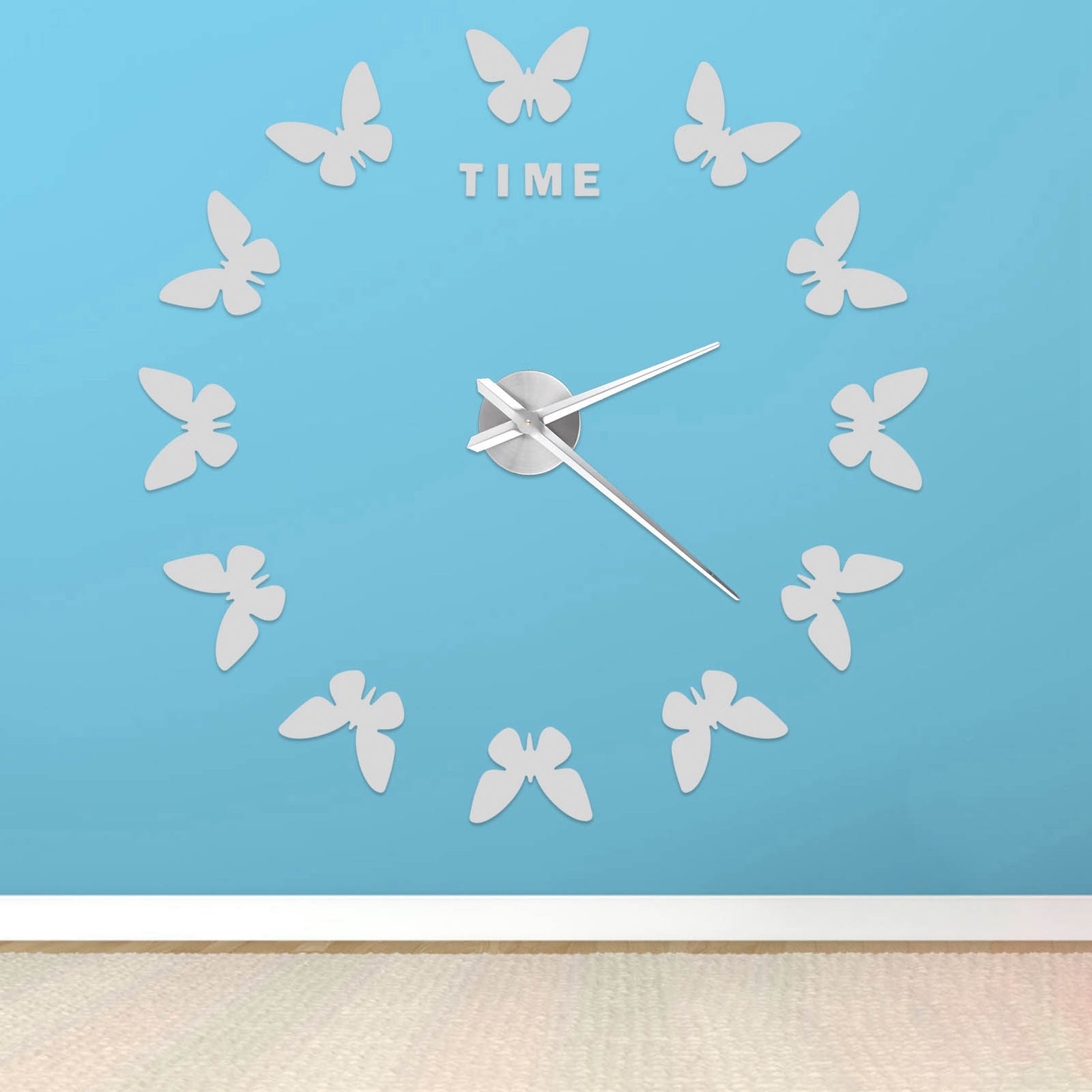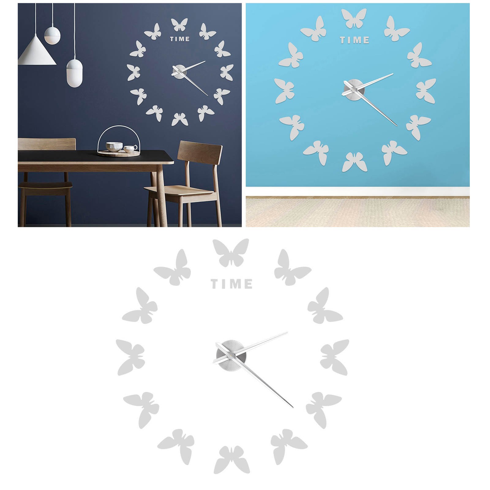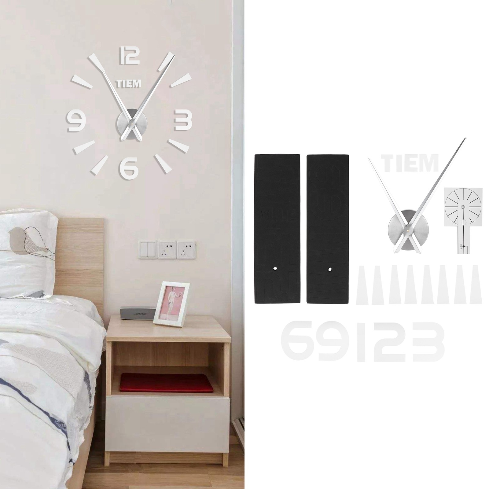 (Silver)3D Wall Clock Sticker 3D Big Watch Decor DIY Wall Wall Watch Decor Enjoy