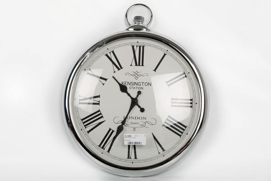 42CM ANTIQUE ROUND SILVER COLOUR WALL CLOCK ROMAN NUMBERS