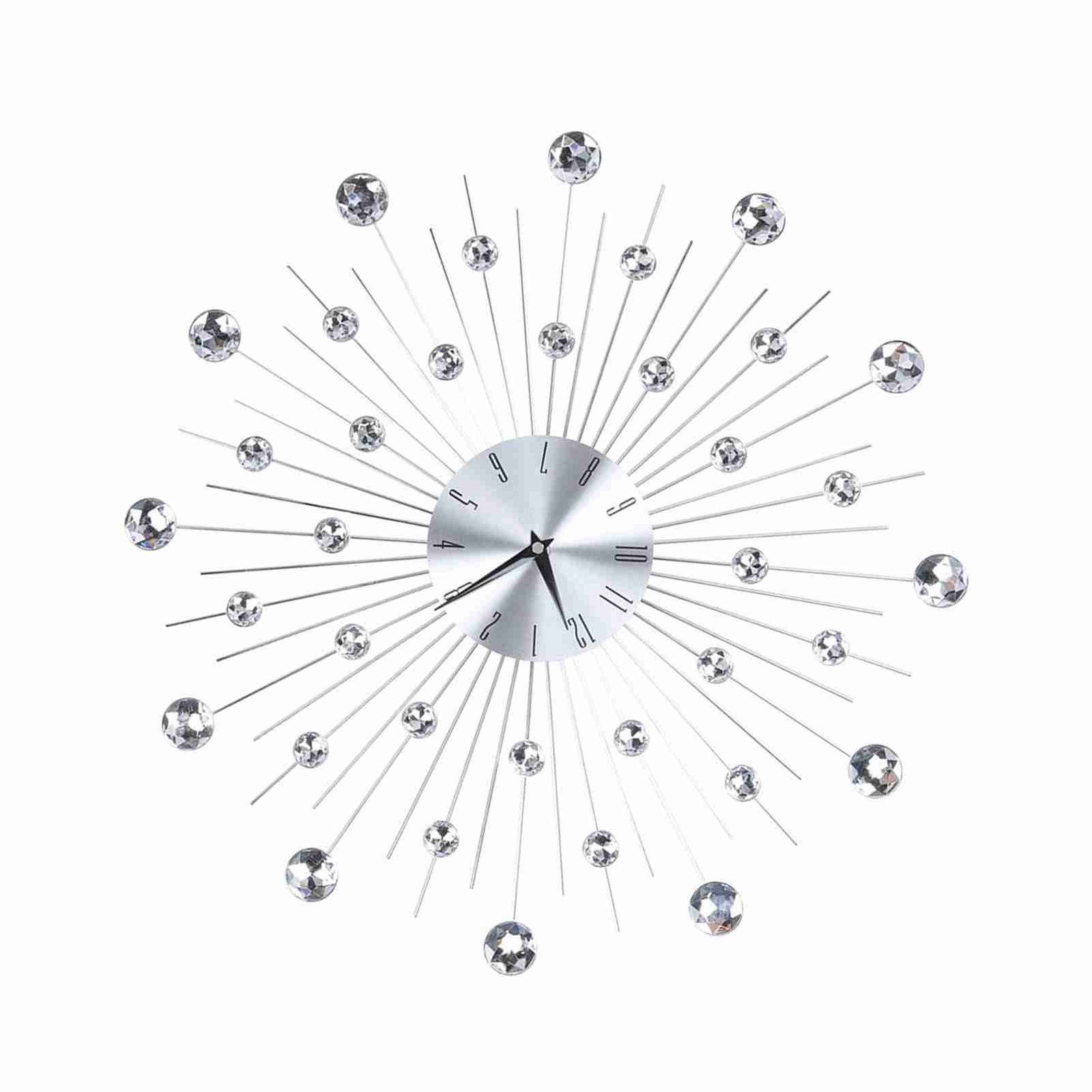 Silver Rhinestone Sparkling Bling Metallic Silver Wall Clock For Living Room