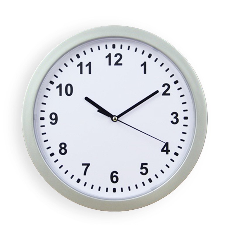 Silver Round Quartz Wall Clock Battery Operated 24cm Office Minimalistic Clock