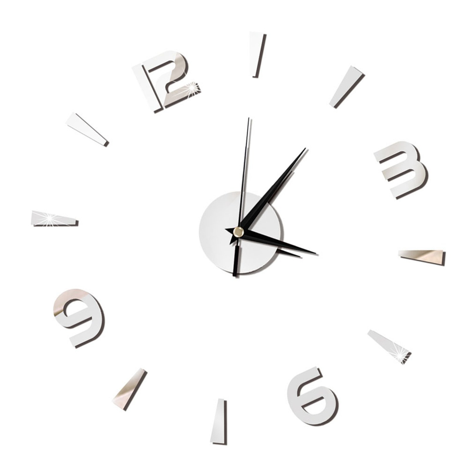 Silver Large Wall Sticker Clock Shape Innovation DIY Modern Art
