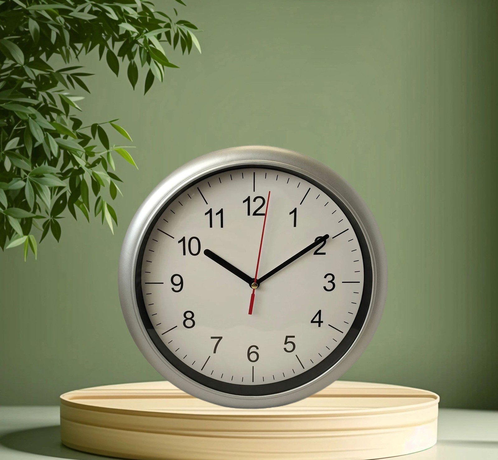 Silver Plastic Wall Clock, 23cm (1 Piece) - Battery-Operated, Decorative Timepiece for Home & Office Spaces