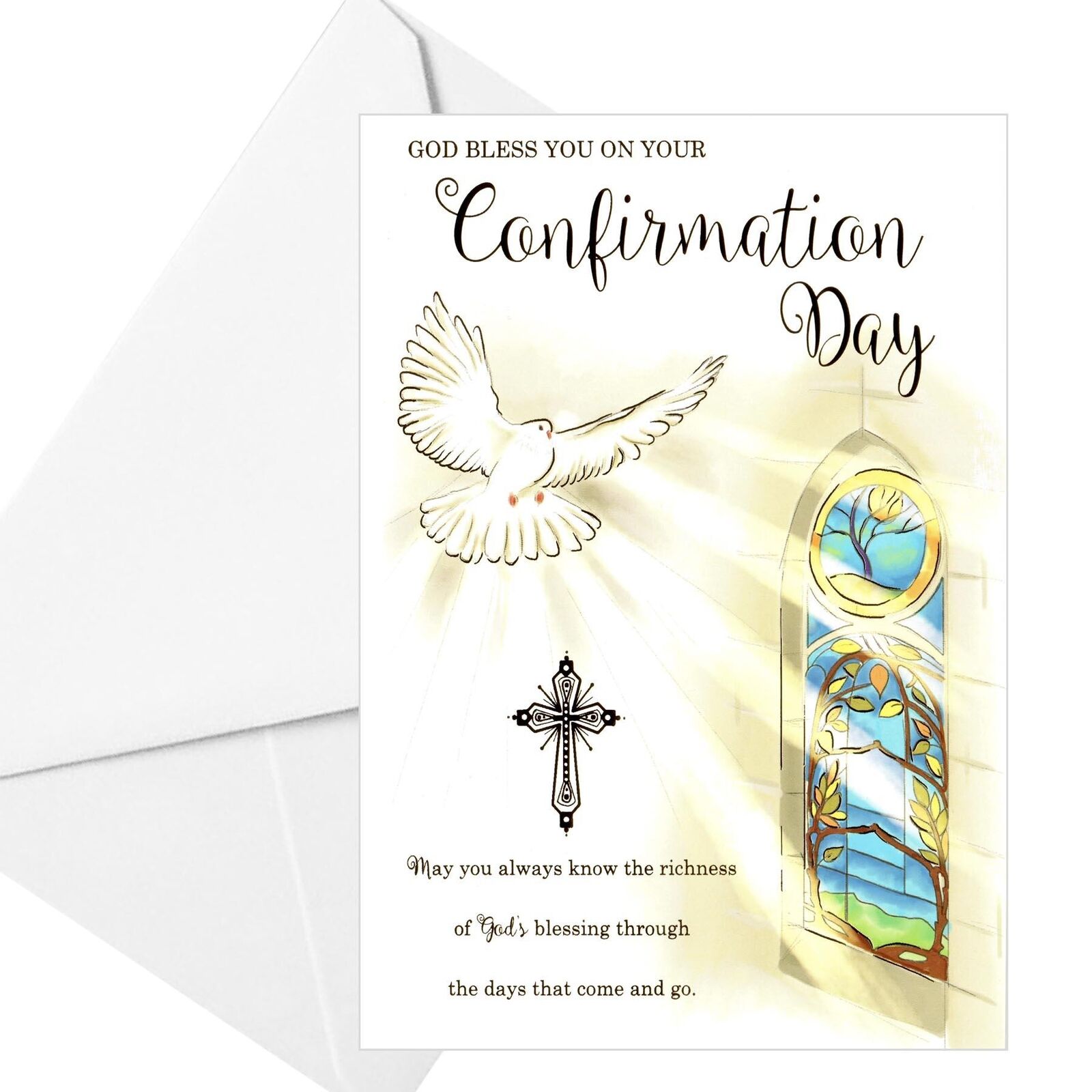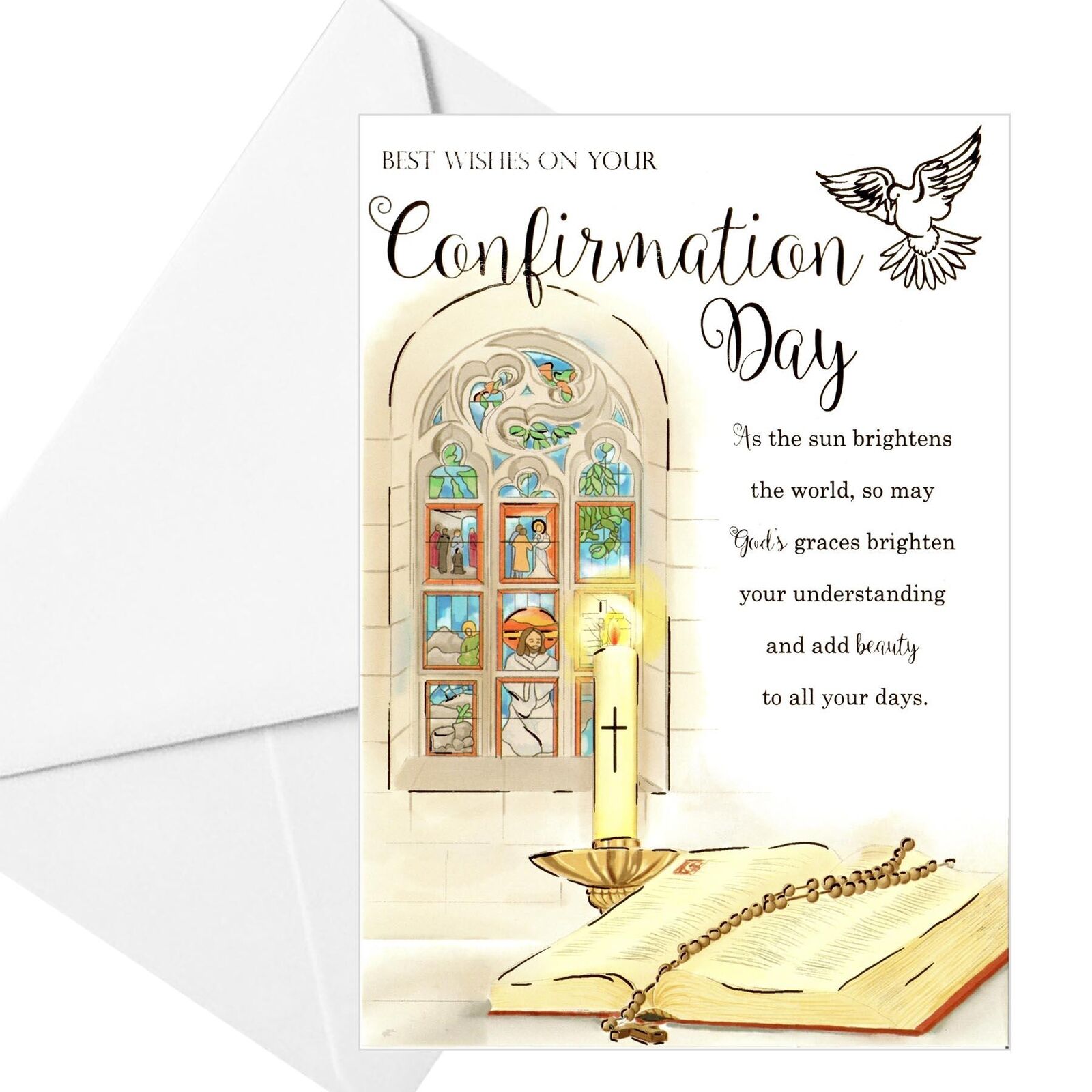 Confirmation Card with Foil Detail and White Envelope - Stain Glass A