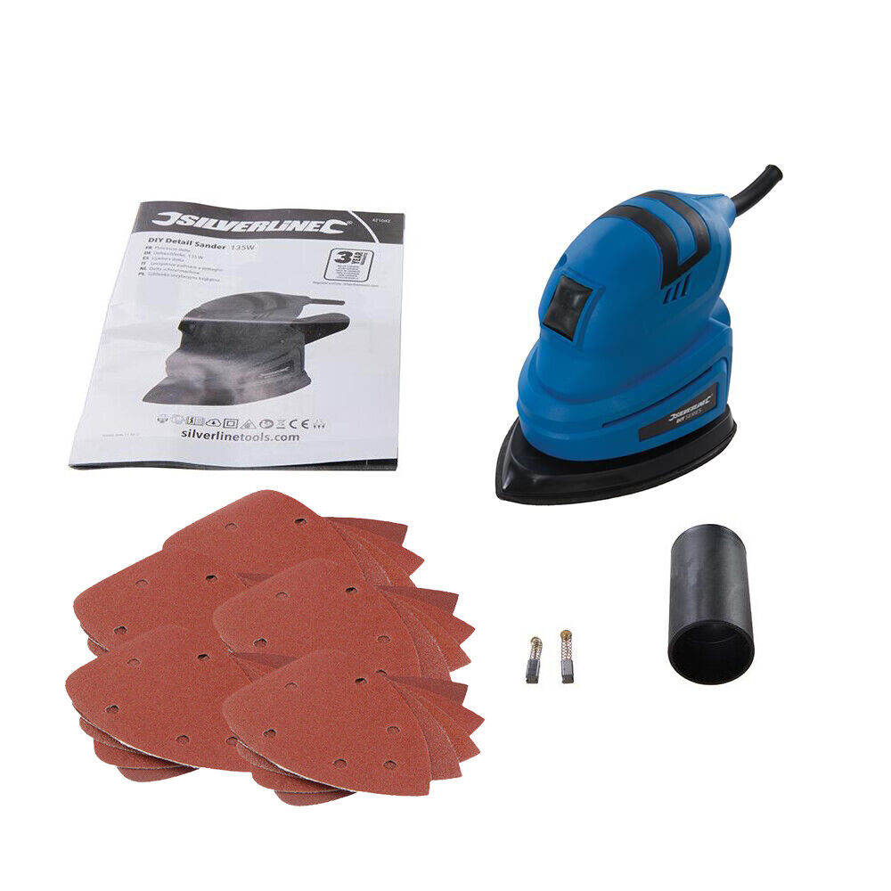 Detail Sander 130w Electric Palm+25 Sanding Sheets - 3 Year Warranty Silverline