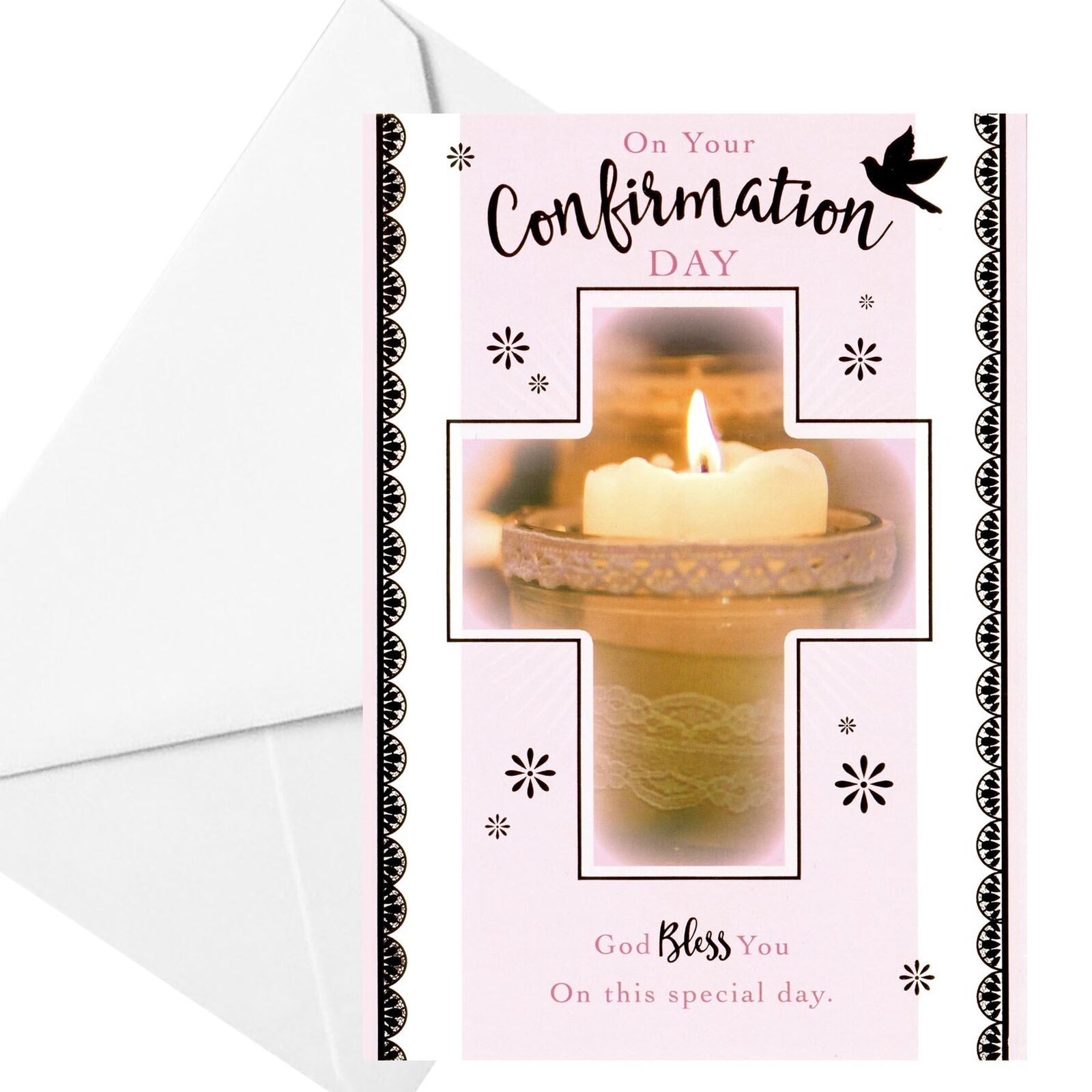 Confirmation Card with Foil Detail and White Envelope - Pink A