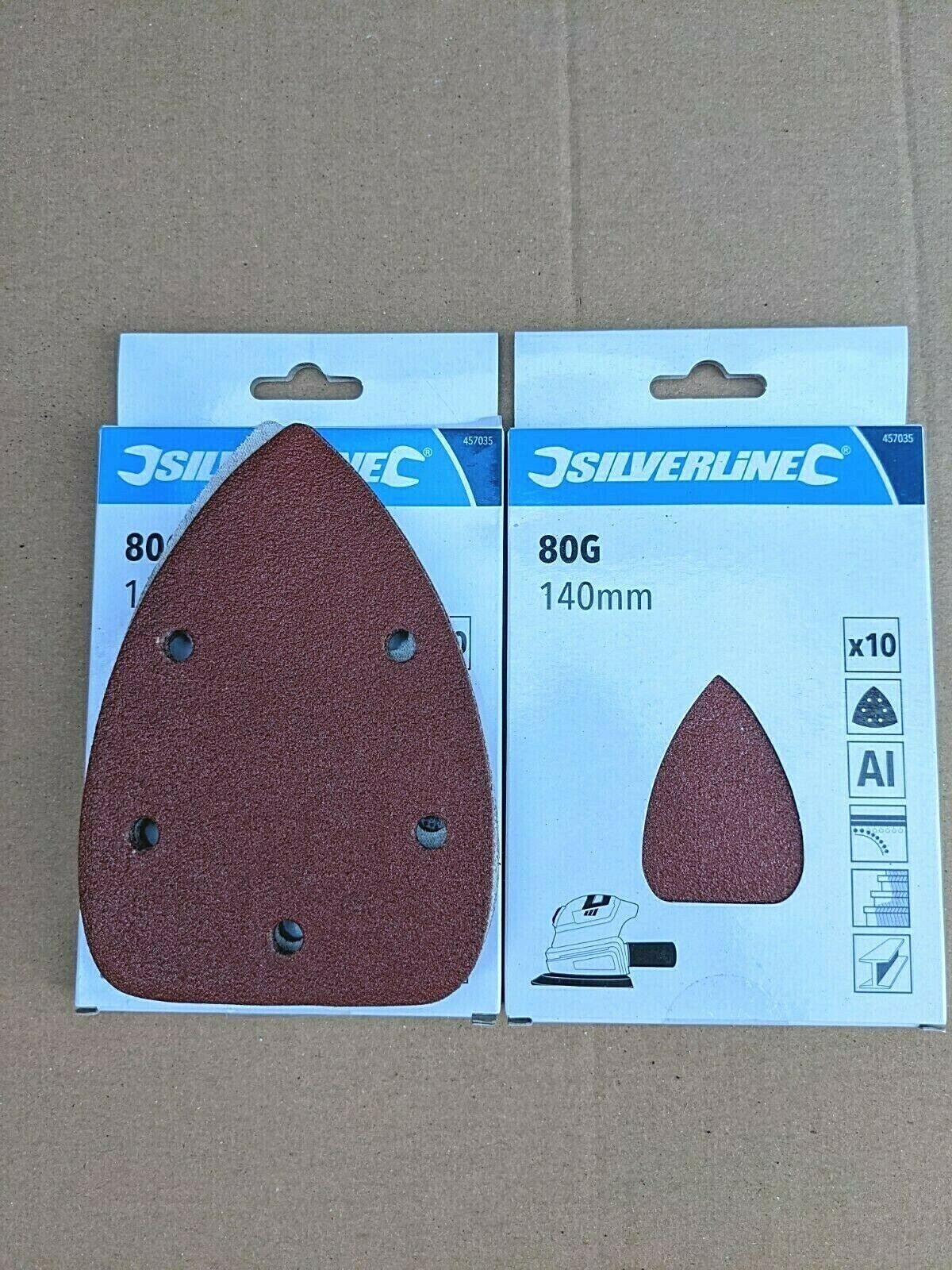 2 PACKS (20 SHEETS) SILVERLINE 140MM HOOK & LOOP DETAIL SANDING SHEETS 80G