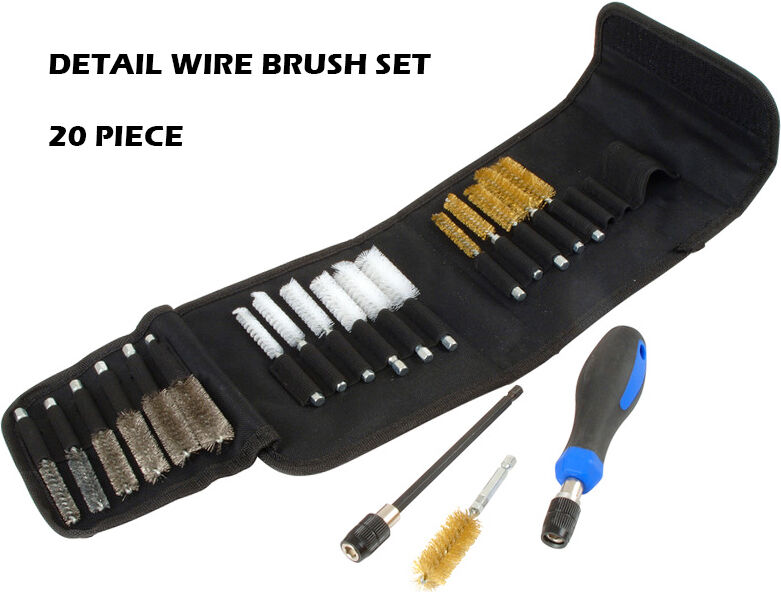 20 PIECE DETAIL WIRE BRUSH SET 9-19MM BRASS NYLON STEEL BRUSHES CLEANING U313