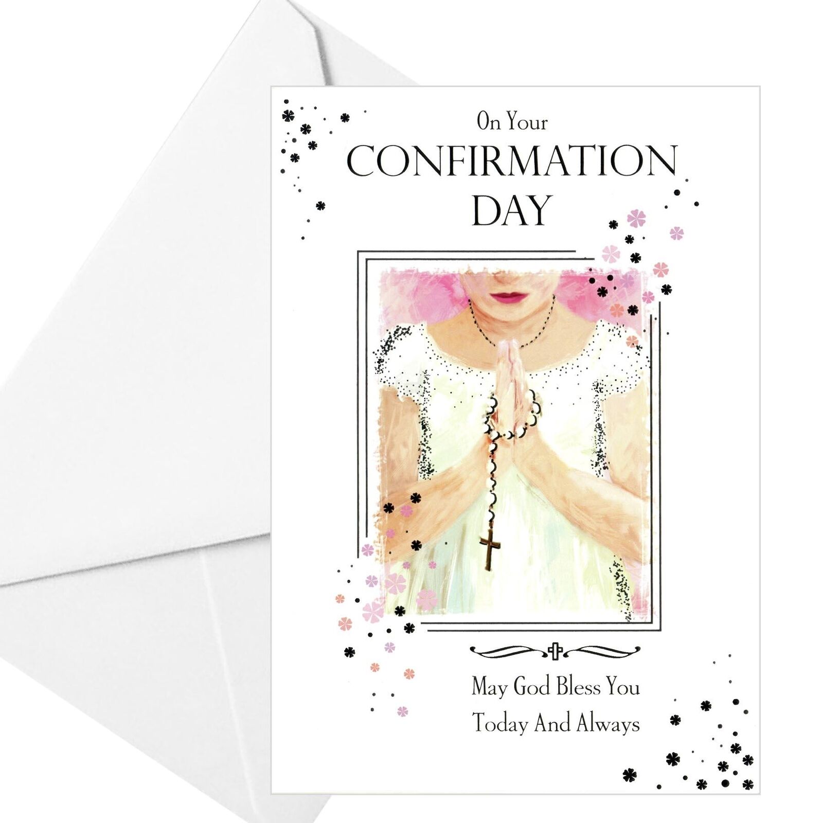 Confirmation Card with Foil Detail and White Envelope - Praying Girl