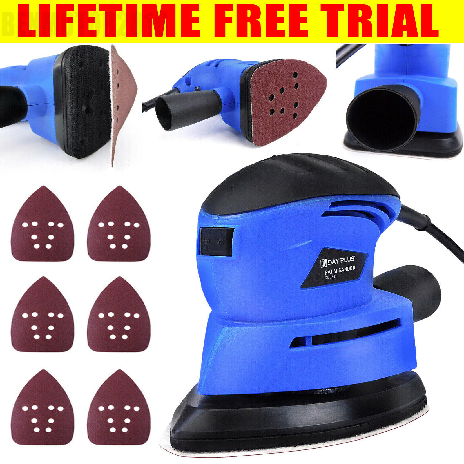 Dayplus 130W Electric Detail Palm Sander Hand Power Tool Dust Extraction Adaptor