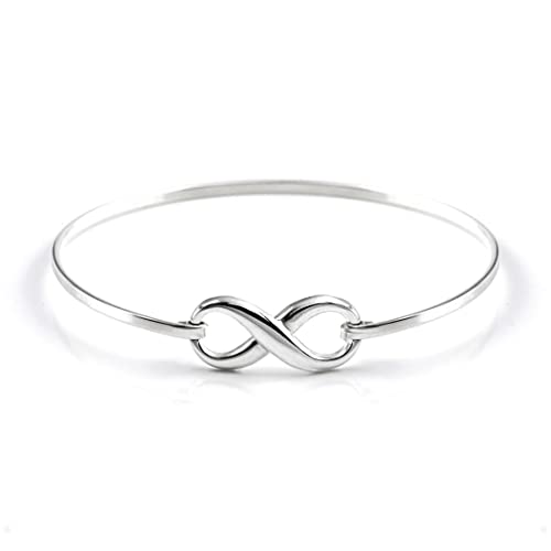 Silverly 925 Sterling Silver Infinity Bangle With Hook Clasp - Solid Silver Bracelet - Classic Jewellery for Women - Wedding Gift - Gifts for Girlfriend - Friendship Bracelets