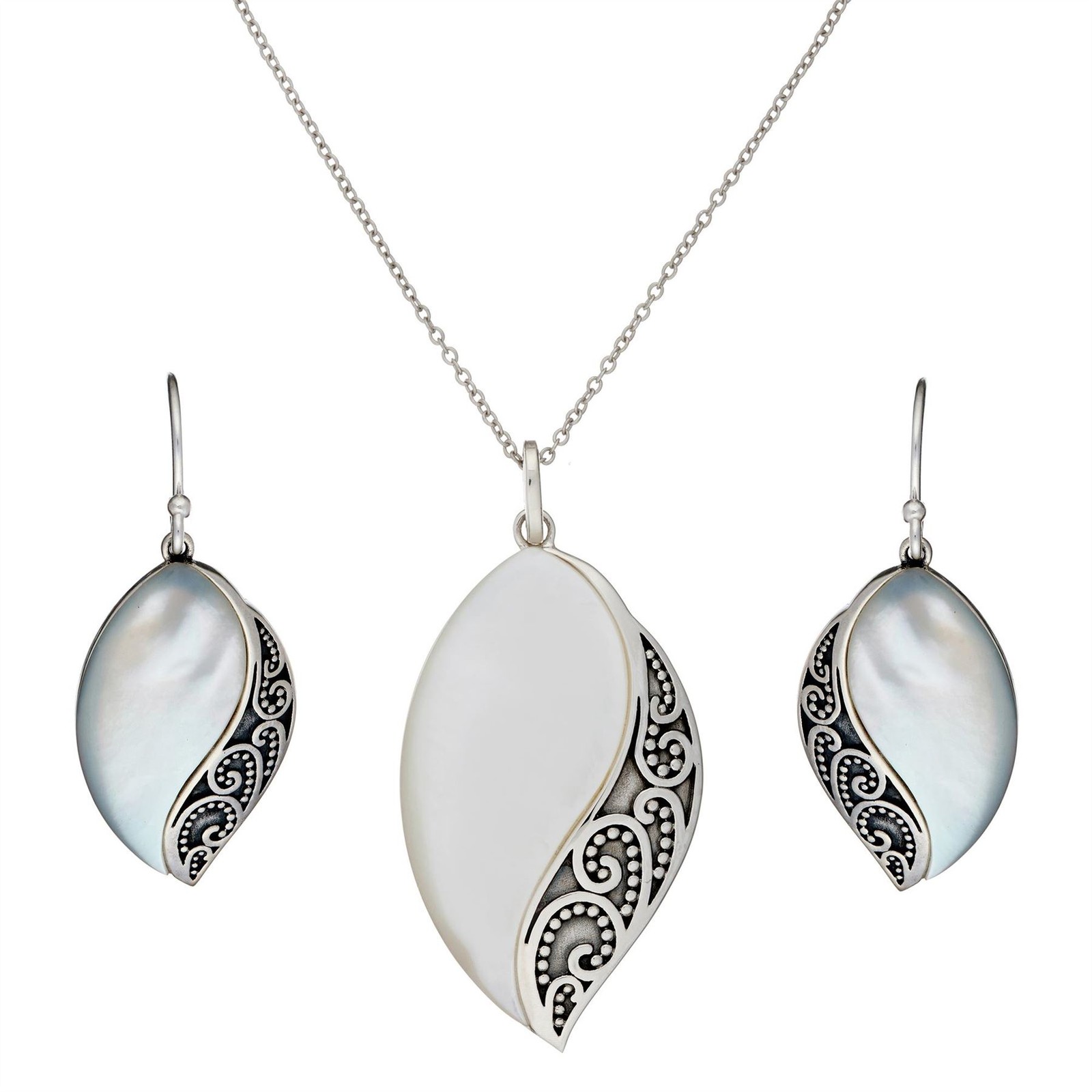 Silverly Mother of Pearl Earrings 925 Silver Filigree Marquise Jewellery Set