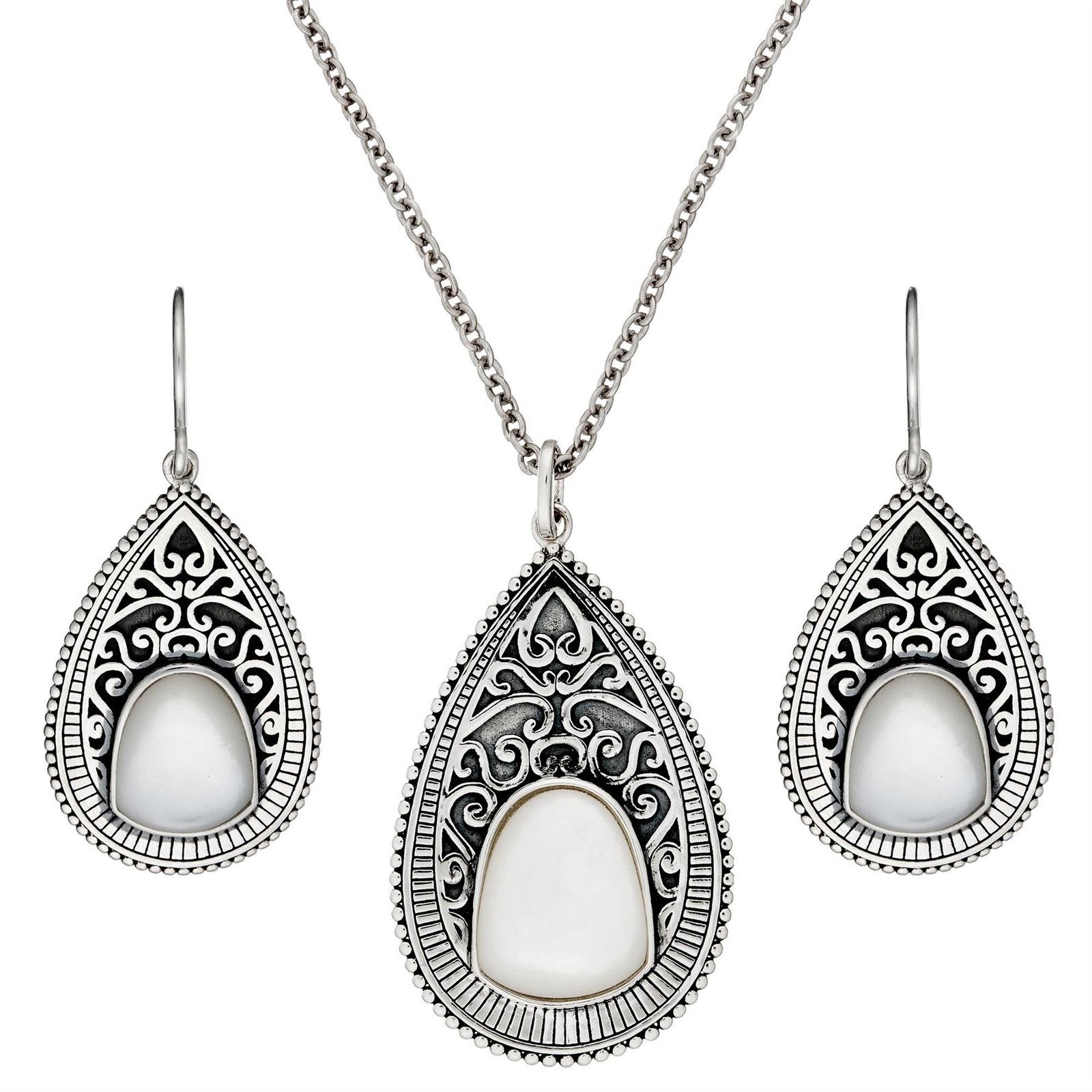 Silverly Mother of Pearl Jewellery Set 925 Sterling Silver Filigree Teardrop