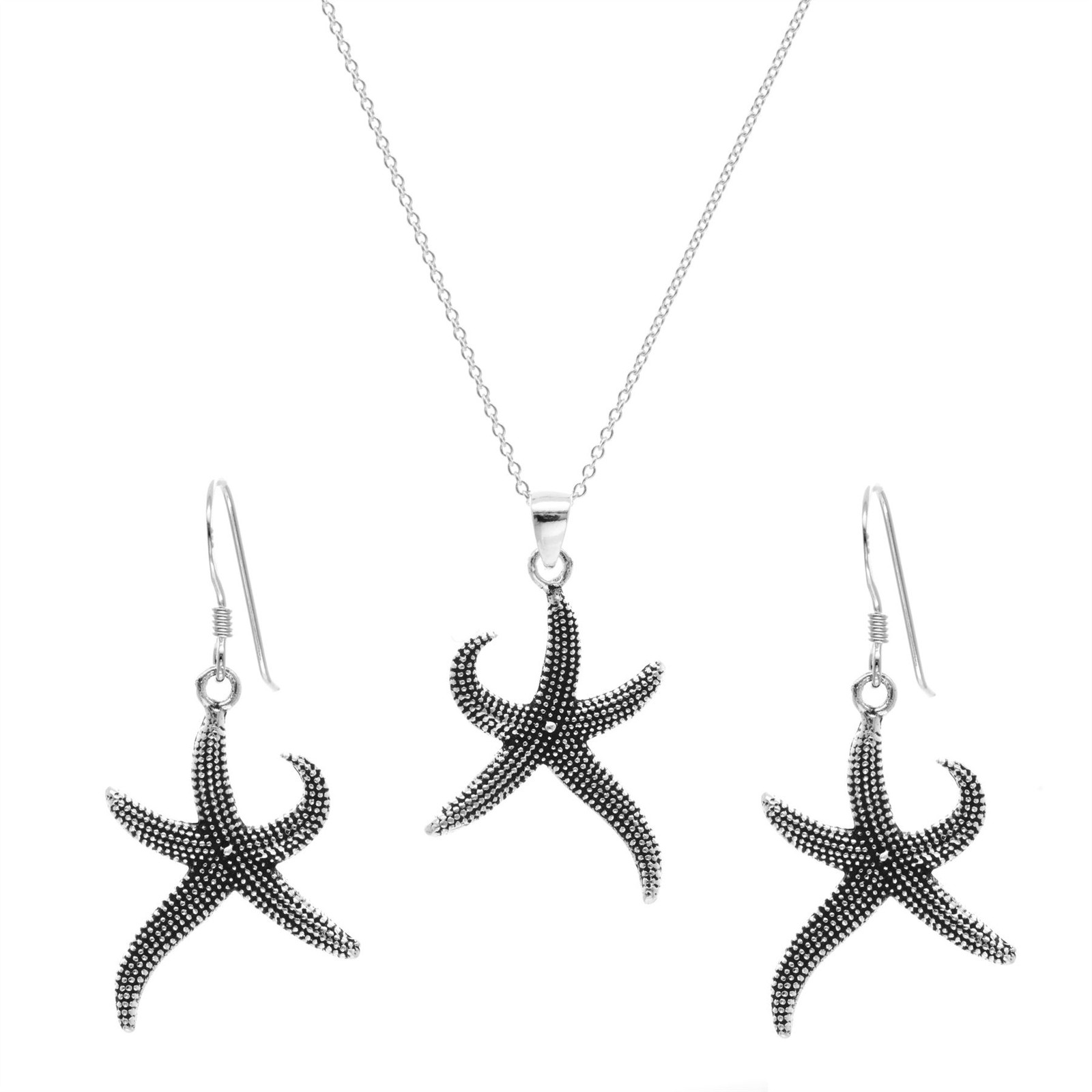 Silverly Sterling Silver Jewellery Set 925 Oxidised Textured Ocean Starfish