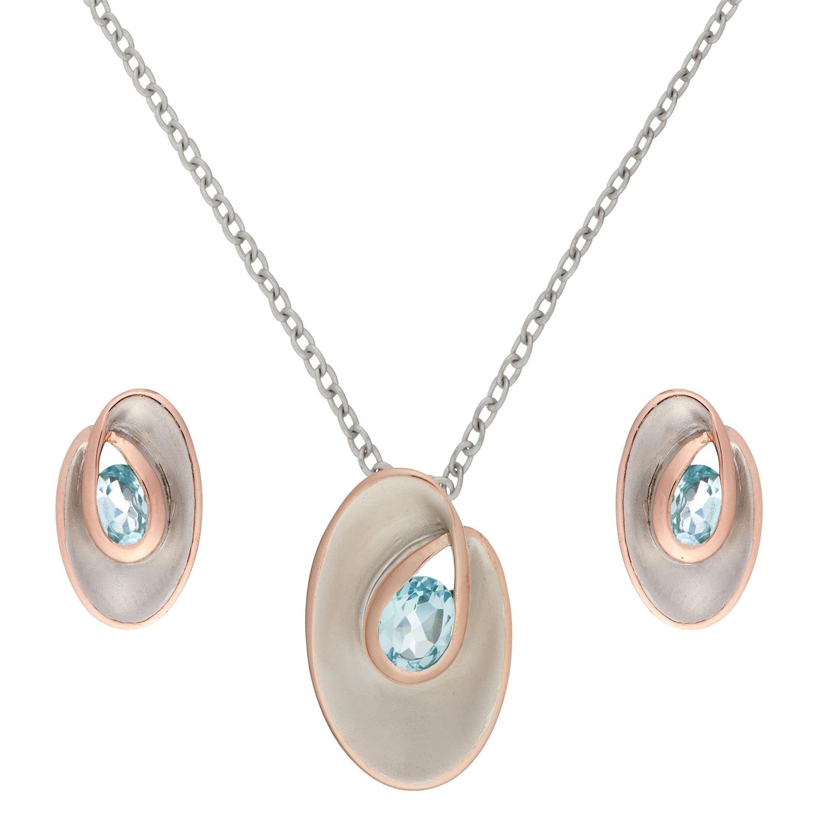 Silverly Rose Gold Plated 925 Silver Brushed Blue Topaz Oval Jewellery Set