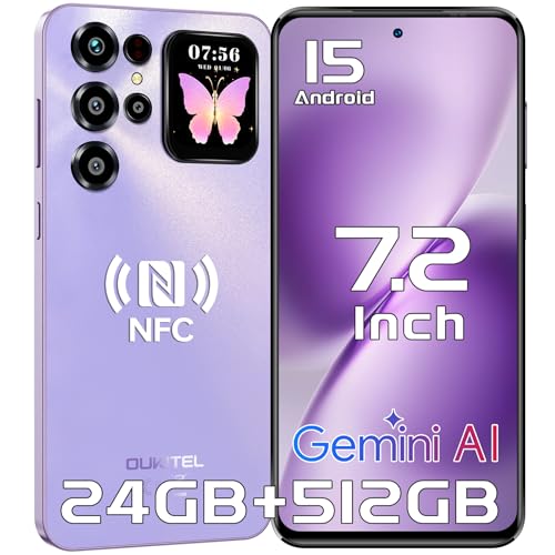 OUKITEL C69 SIM-Free & Unlocked Mobile Phones - Android 15 Phone, 7.2" Display Smart Phone, 24GB+256/1TB, 6000mAh Phones, 64+8MP, 4G Dual SIM, Fingerprint/Face ID/NFC/OTG/GPS(Purple)