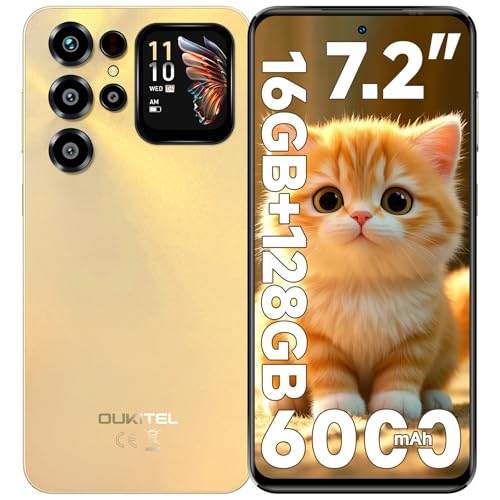 OUKITEL C69 Mobile Phones 2025 - Android 15, 7.2" Smart phone, 24GB+256GB/1TB, 6000mAh Battery Phone, 64MP Camera, 4G Dual SIM-Free & Unlocked Mobile Phones, Fingerprint/Face Unlock/NFC/GPS, Gold