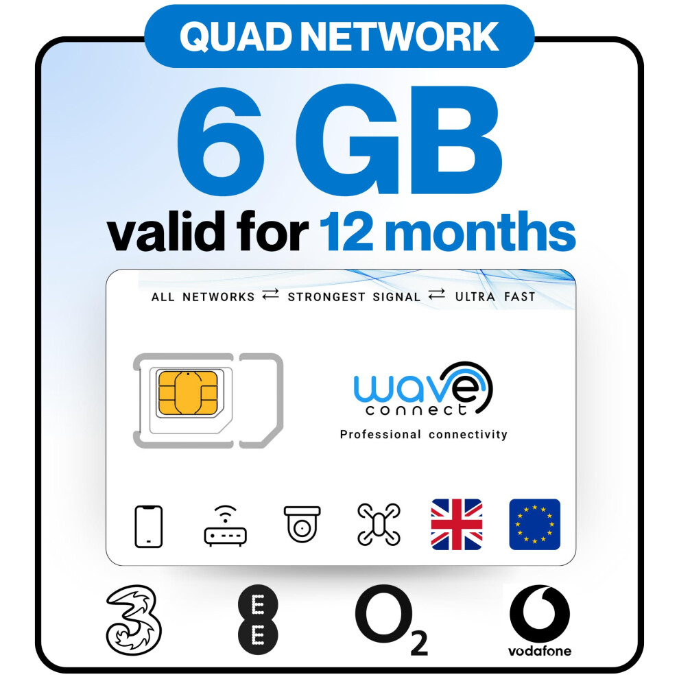 Wave Connect UK Quad Network Data Only SIM, 12GB/12 Months, EE, O2, Vodafone, Th