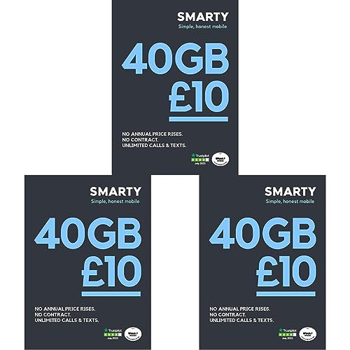 SMARTY 40GB for £10 SIM ONLY. 1 month plan, No contract, EU Roaming (Pack of 3)