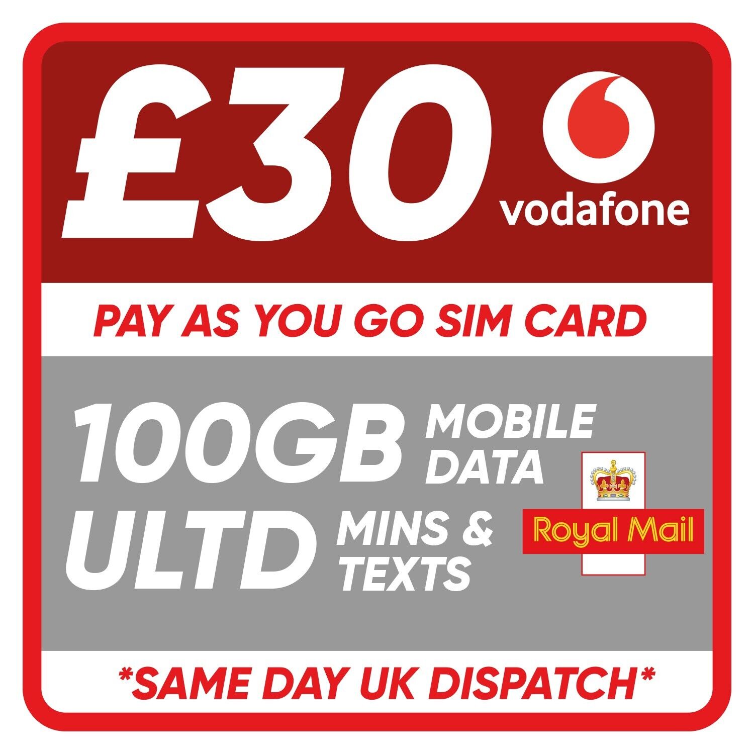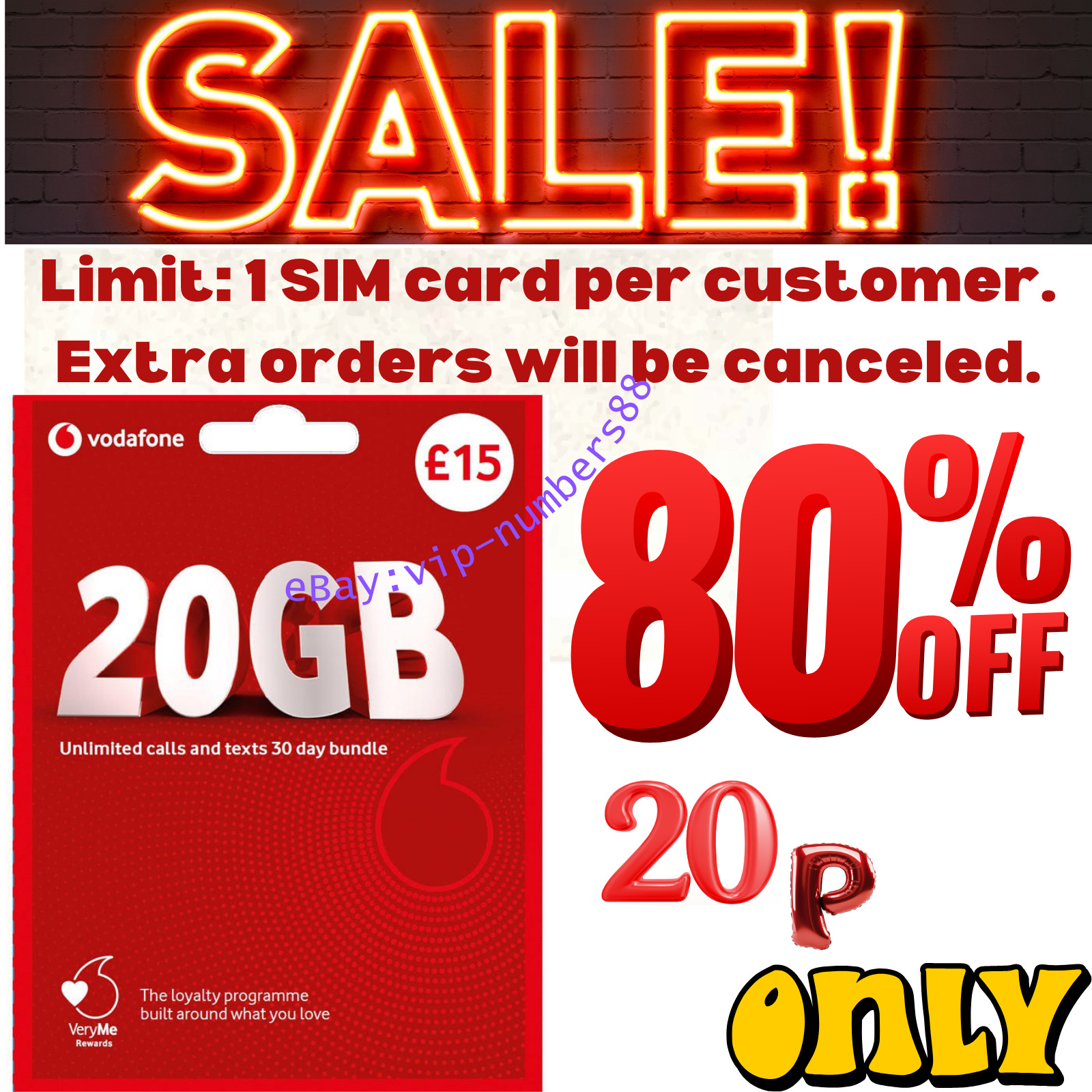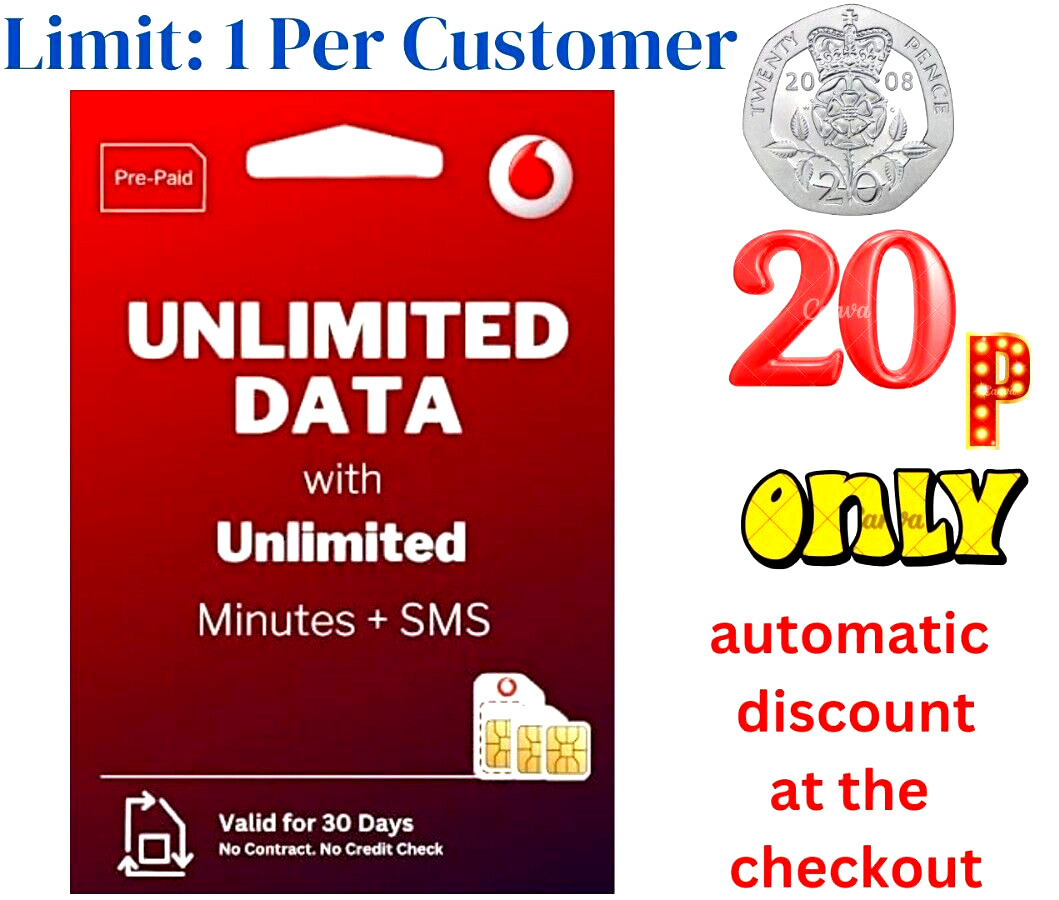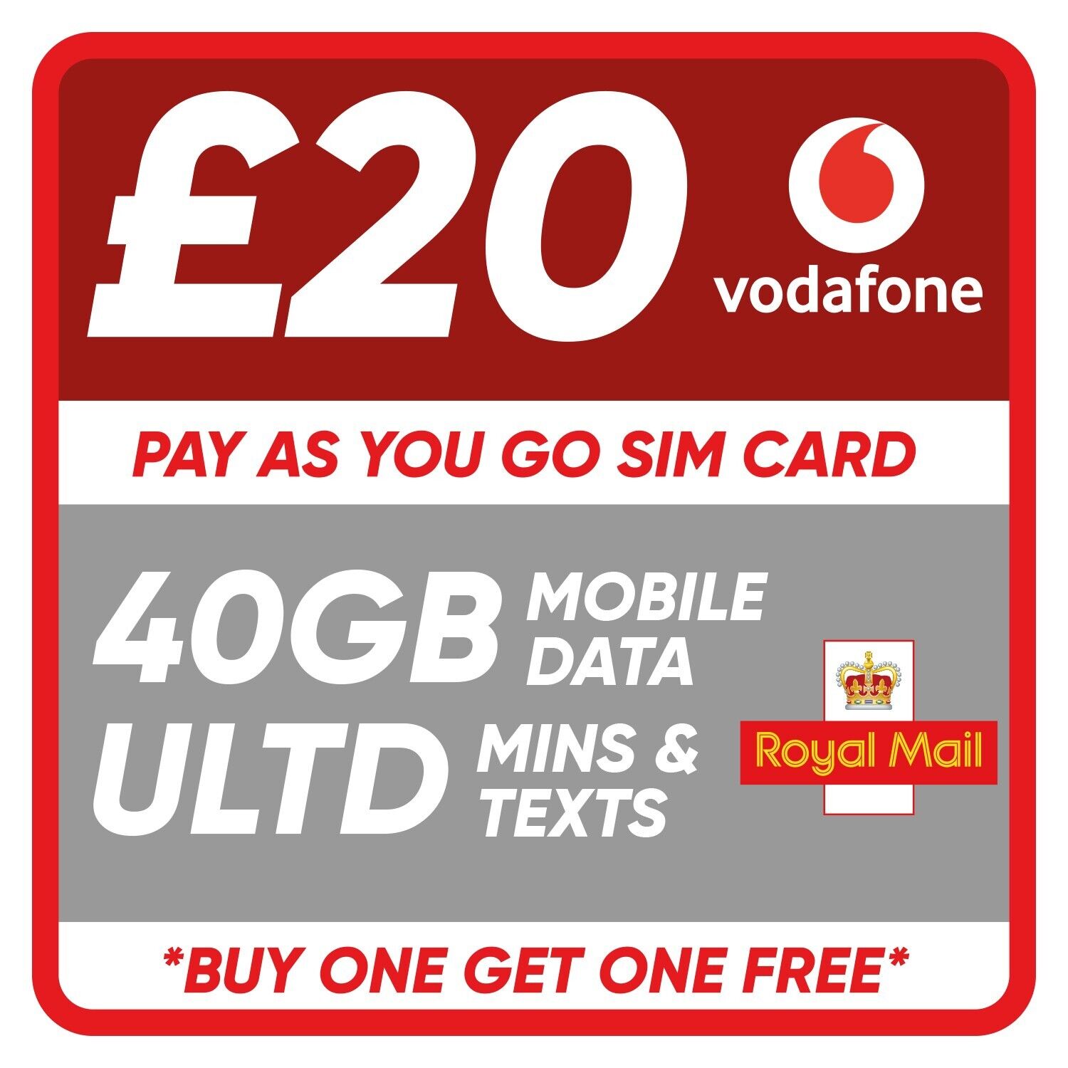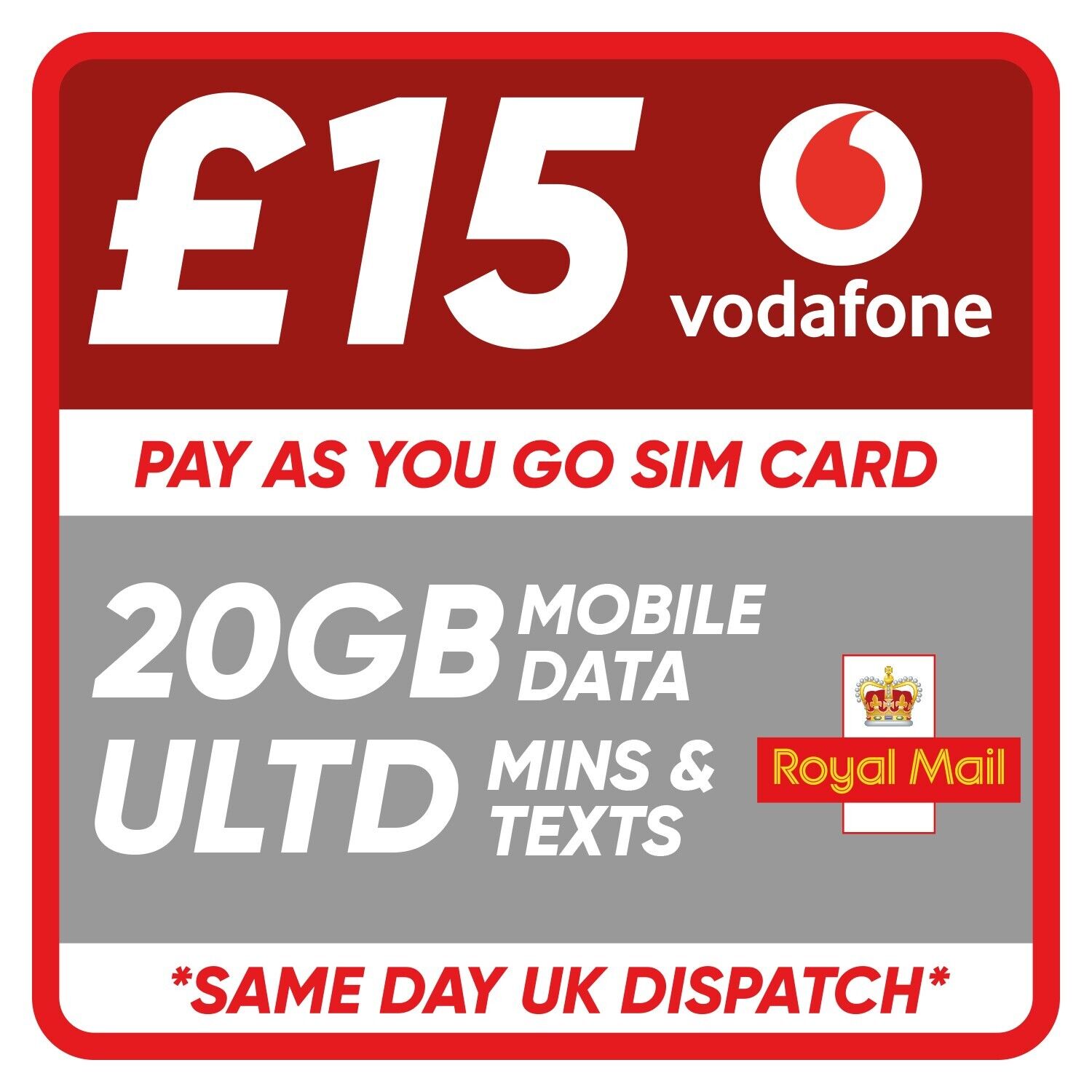 New Vodafone PAYG SIM Card Unltd calls txts 20GB £15 Empty Sim Fast And Free