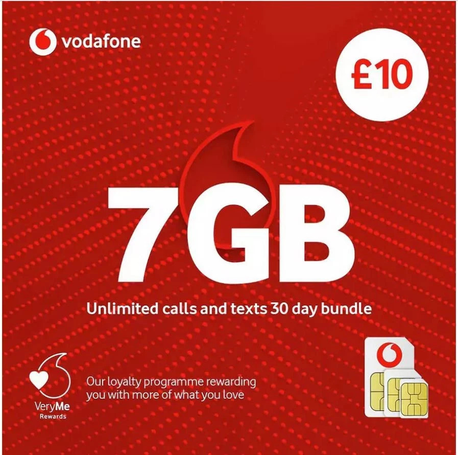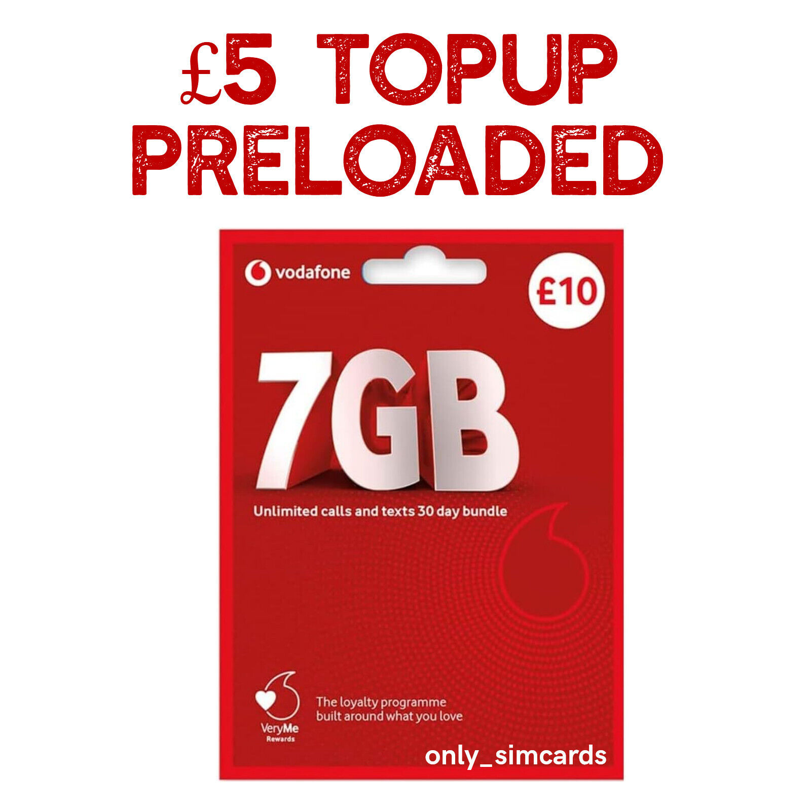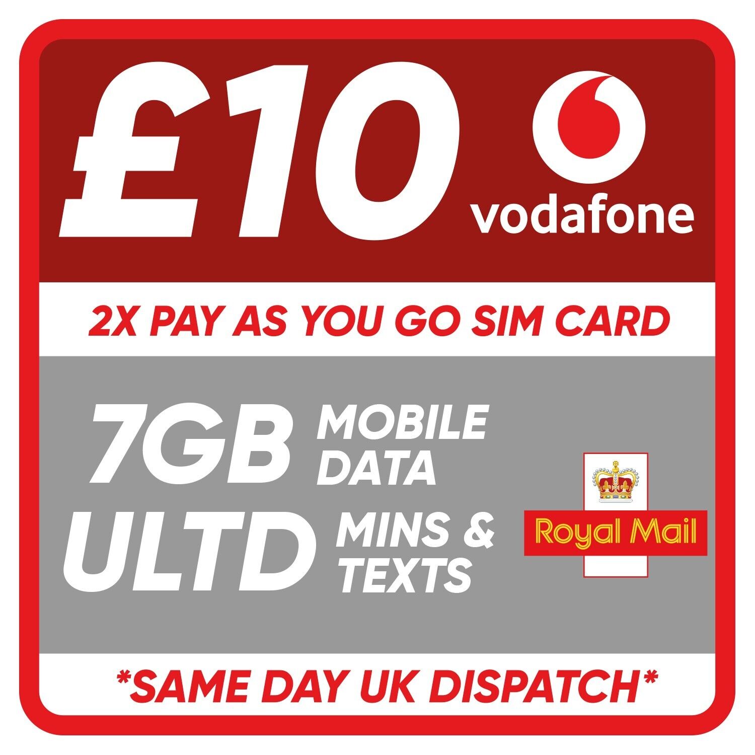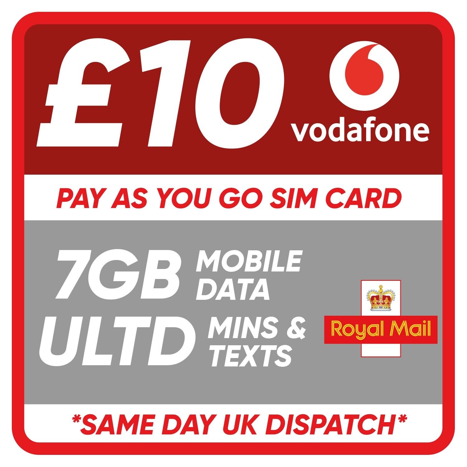 BRAND NEW Vodafone SIM card pay as you go £10 for 7GB