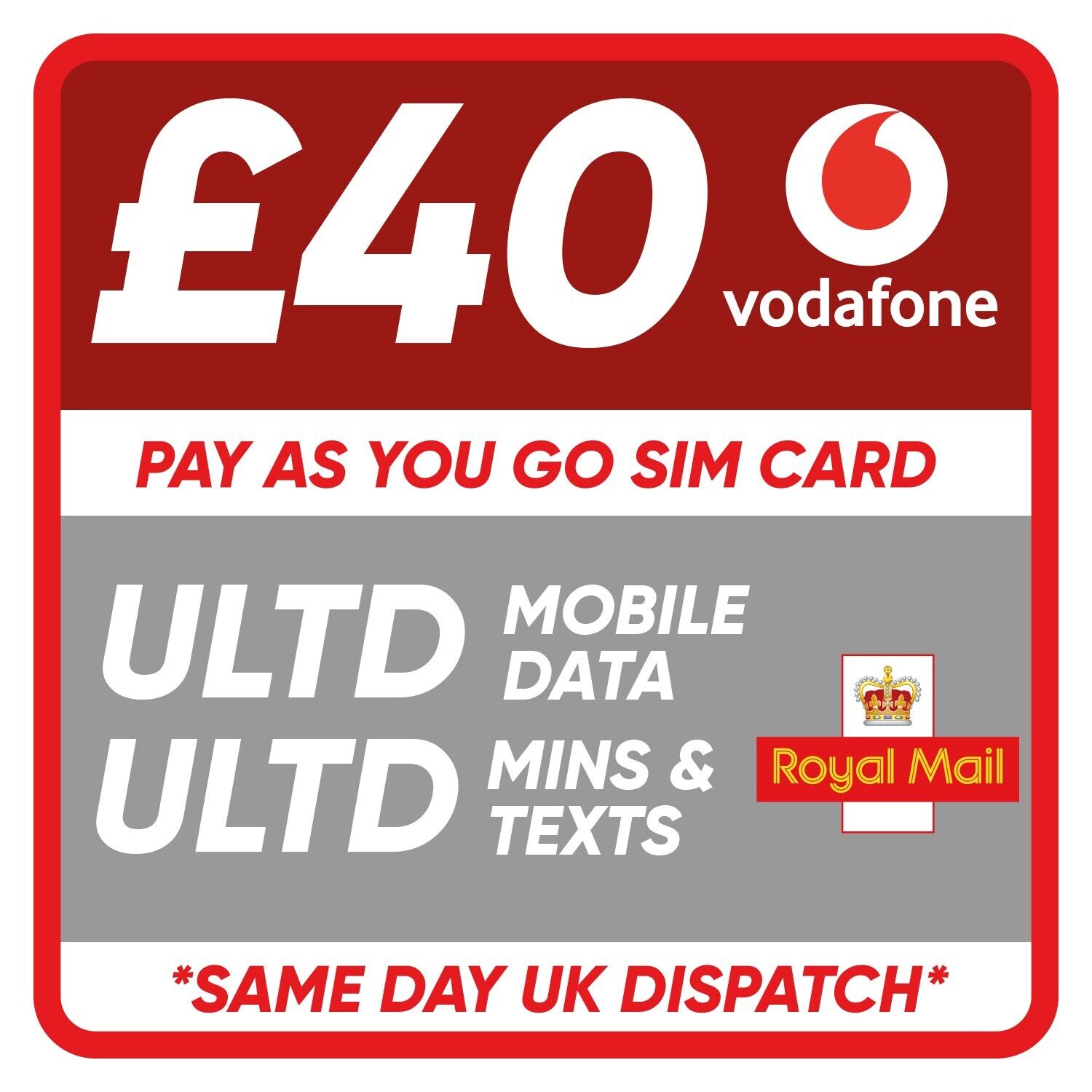 Vodafone Sim Card £40 Unlimited Data, texts and calls