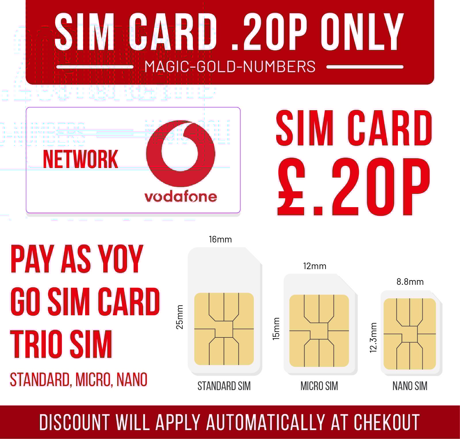 Vodafone Pay As You Go SIM Card - BUY ONE GET 1 FREE! (TRIPLE CUT - ALL SIZES)