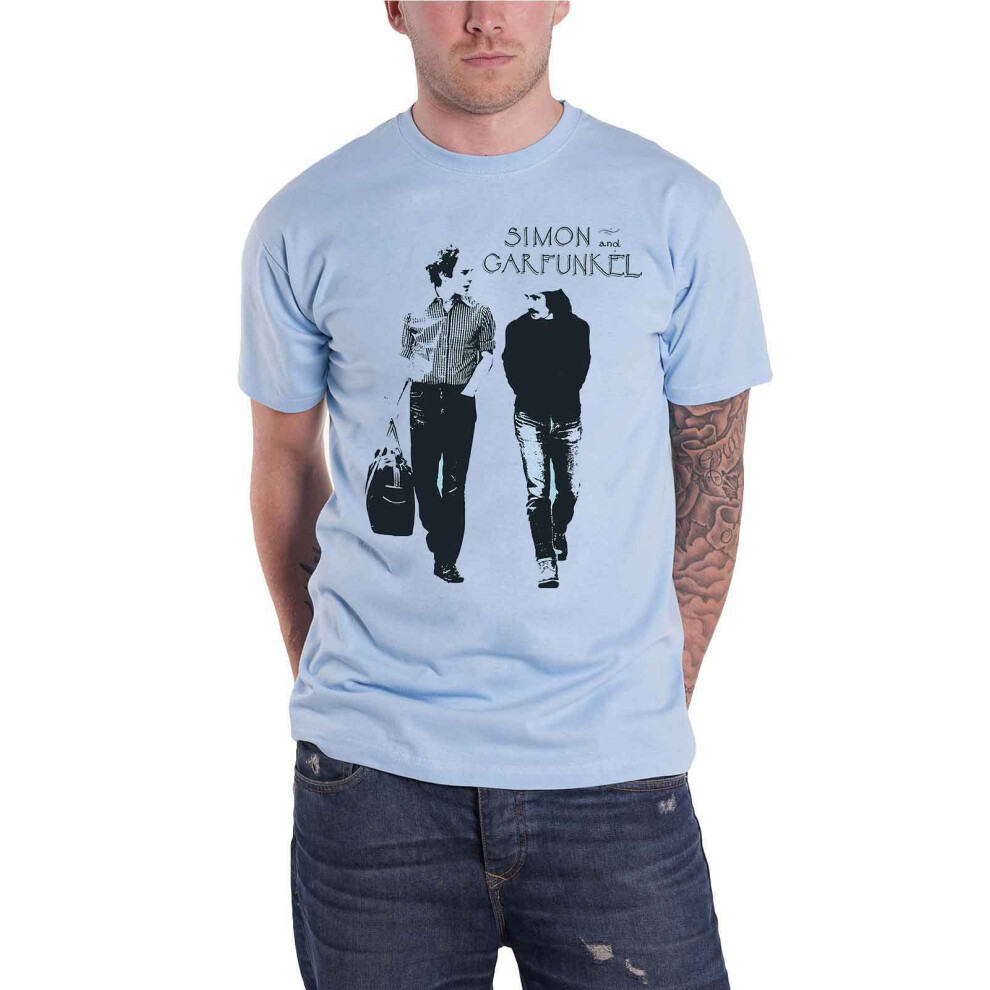 (M, Light Blue) Simon and Garfunkel T Shirt Walking Logo new Official Mens Light Blue