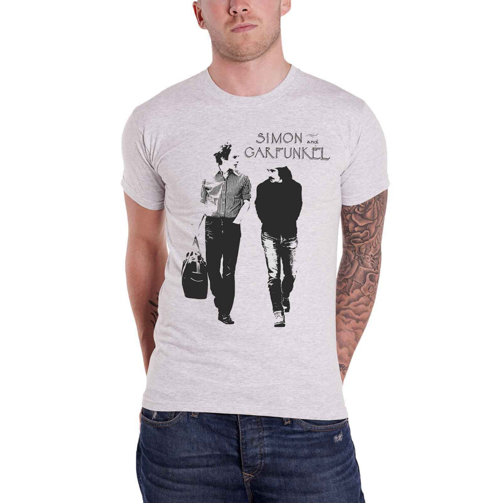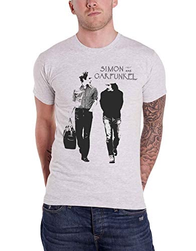 (M, Light Heather) Simon and Garfunkel T Shirt Walking Logo new Official Mens Light Heather