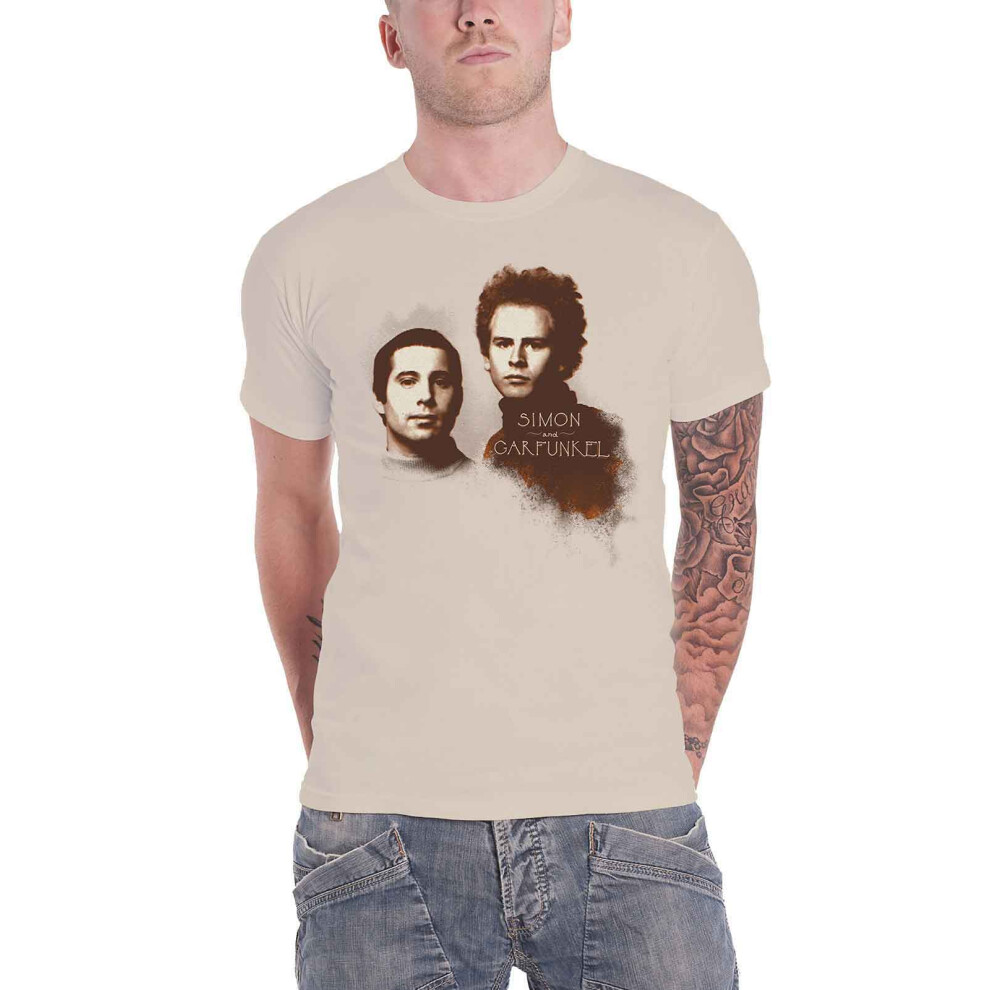 (S, Natural) Simon and Garfunkel T Shirt Faces Logo new Official Mens Natural