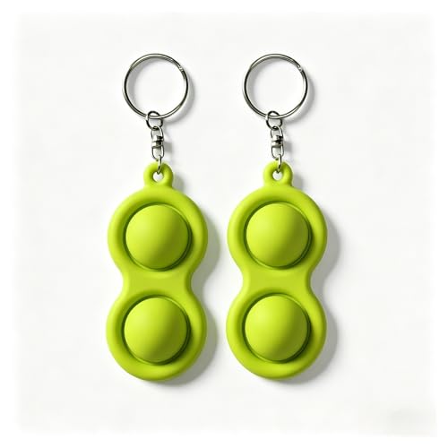 Ngvglumg 2 Pack Fidget Keychain, Simple Dimple Pop Fidget Toys, Push Pop Bubble Keyring Fidgets for Kids Adults, Portable Mini Fidget Toy for School Office Travel, 2 Styles Available(Green,POP2)