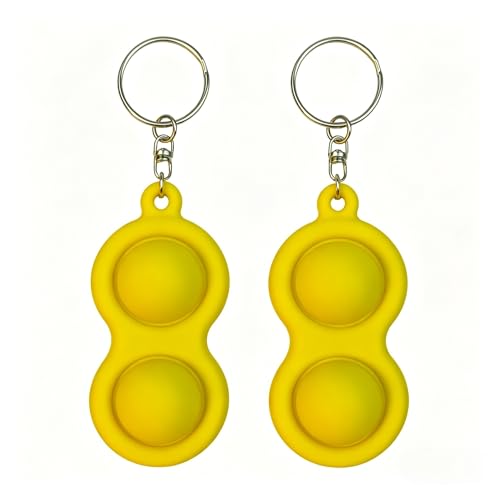 Ngvglumg 2 Pack Fidget Keychain, Simple Dimple Pop Fidget Toys, Push Pop Bubble Keyring Fidgets for Kids Adults, Portable Mini Fidget Toy for School Office Travel, 2 Styles Available(Yellow,POP3)