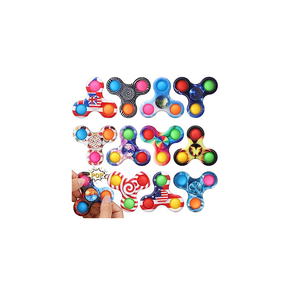 LNCOJOLM 12 Pack Bubble Pop Fidget Spinner Sensory Toy Simple Popper Squeeze Push For Stress Relief, Birthday Gifts Party Favors Student Gift
