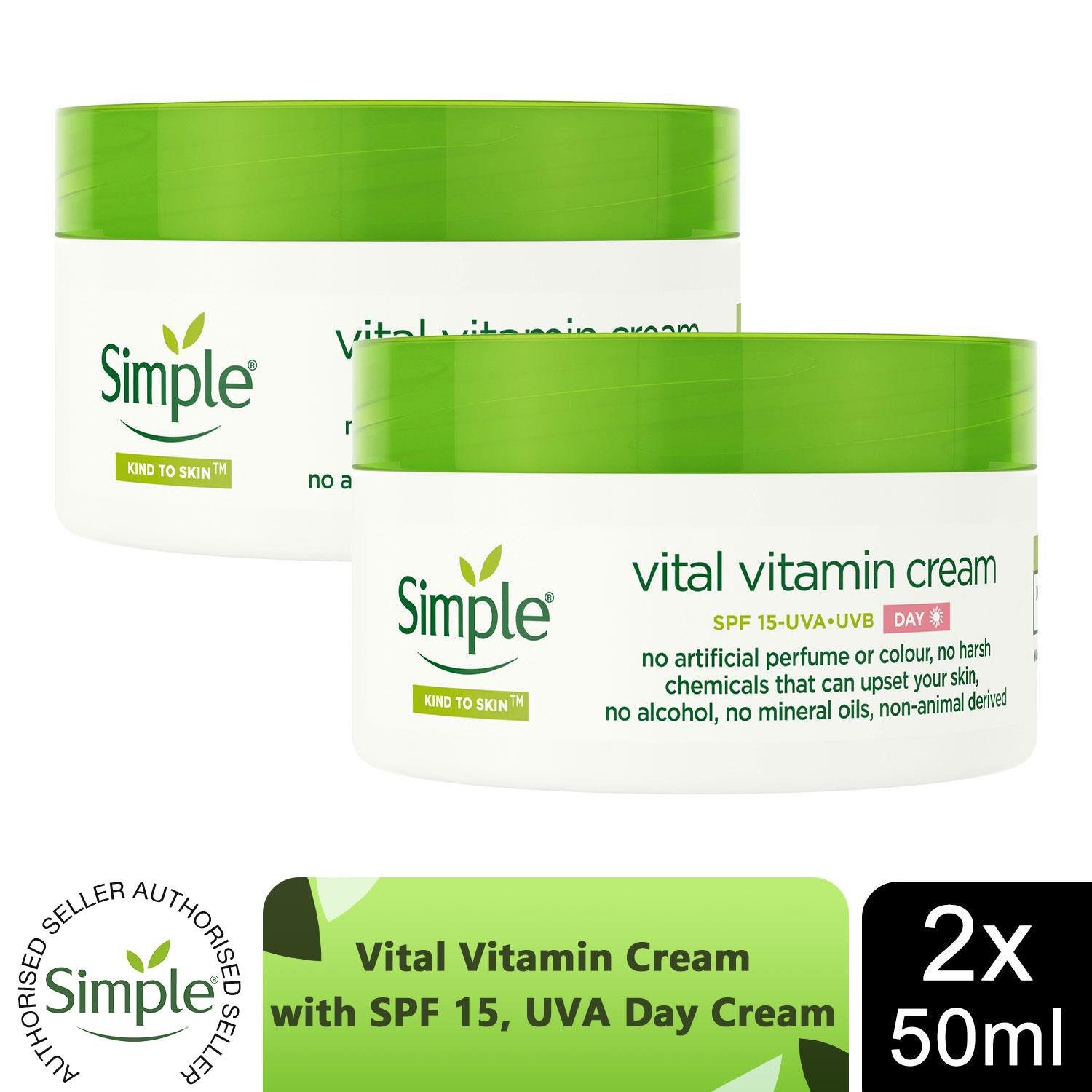 Simple Kind to Skin Face Cream - Day SPF15 or Night Cream, Hydrating 50ml,2 Pack