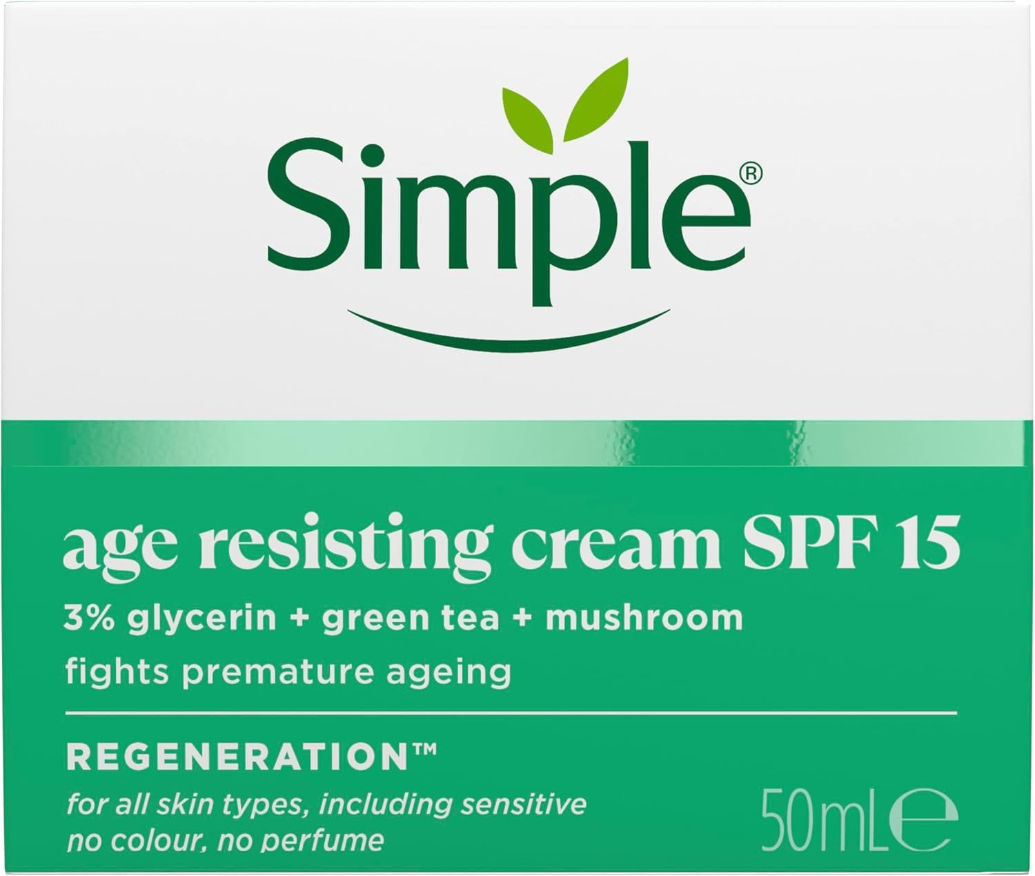 Simple Regeneration Age Resisting Face Cream SPF 15 with 3% Glycerin, Green Tea and Mushroom Extract Anti-Ageing Moisturiser 50 ml