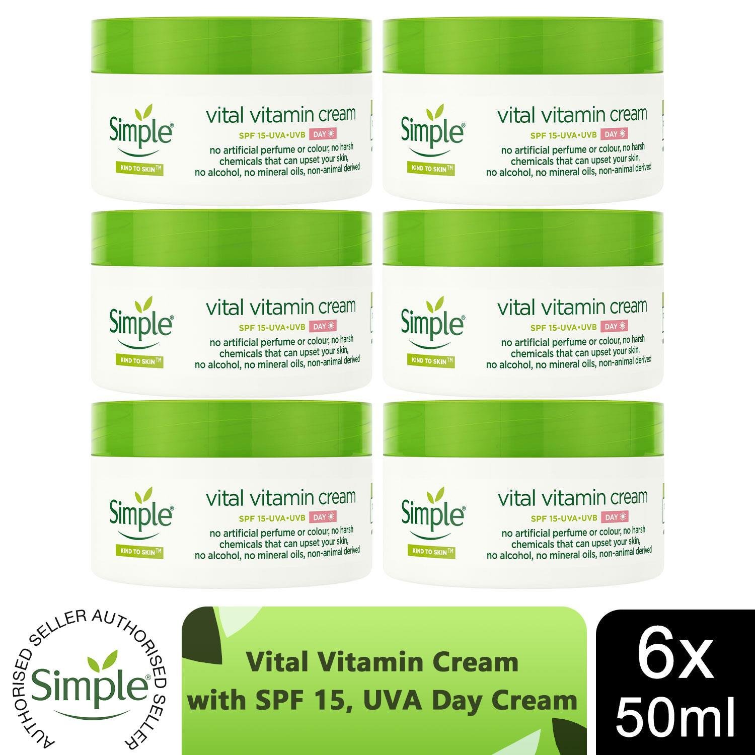 Simple Kind to Skin Face Cream - Day SPF15 or Night Cream, Hydrating 50ml,6 Pack