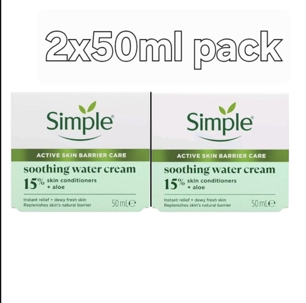 2xSimple Soothing Water Face Cream facial moisturiser with 15% skin cond. + Aloe