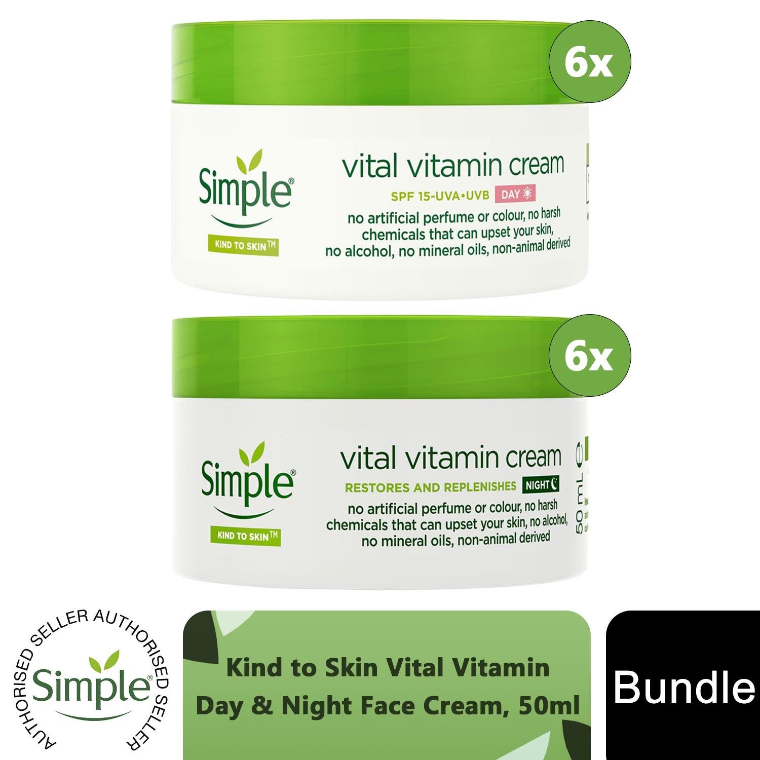 Simple Kind to Skin Face Cream Bundle - Day SPF15 & Night Cream 50ml, 6Pack Each